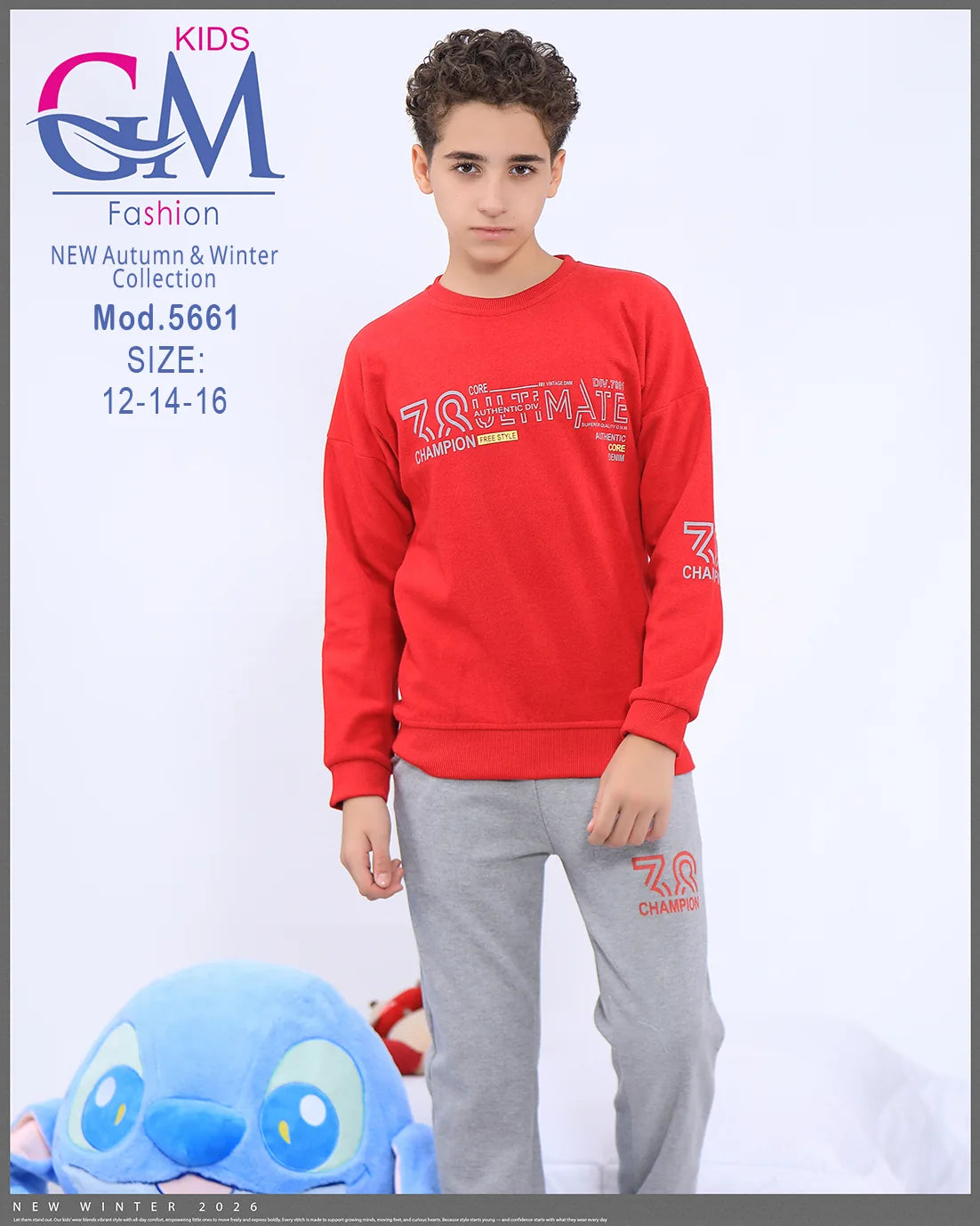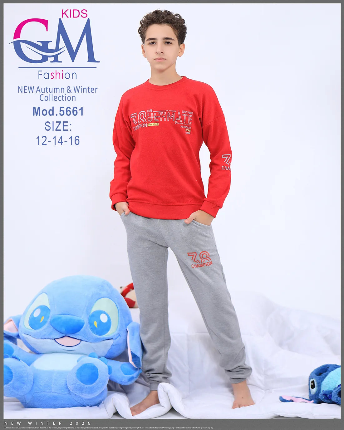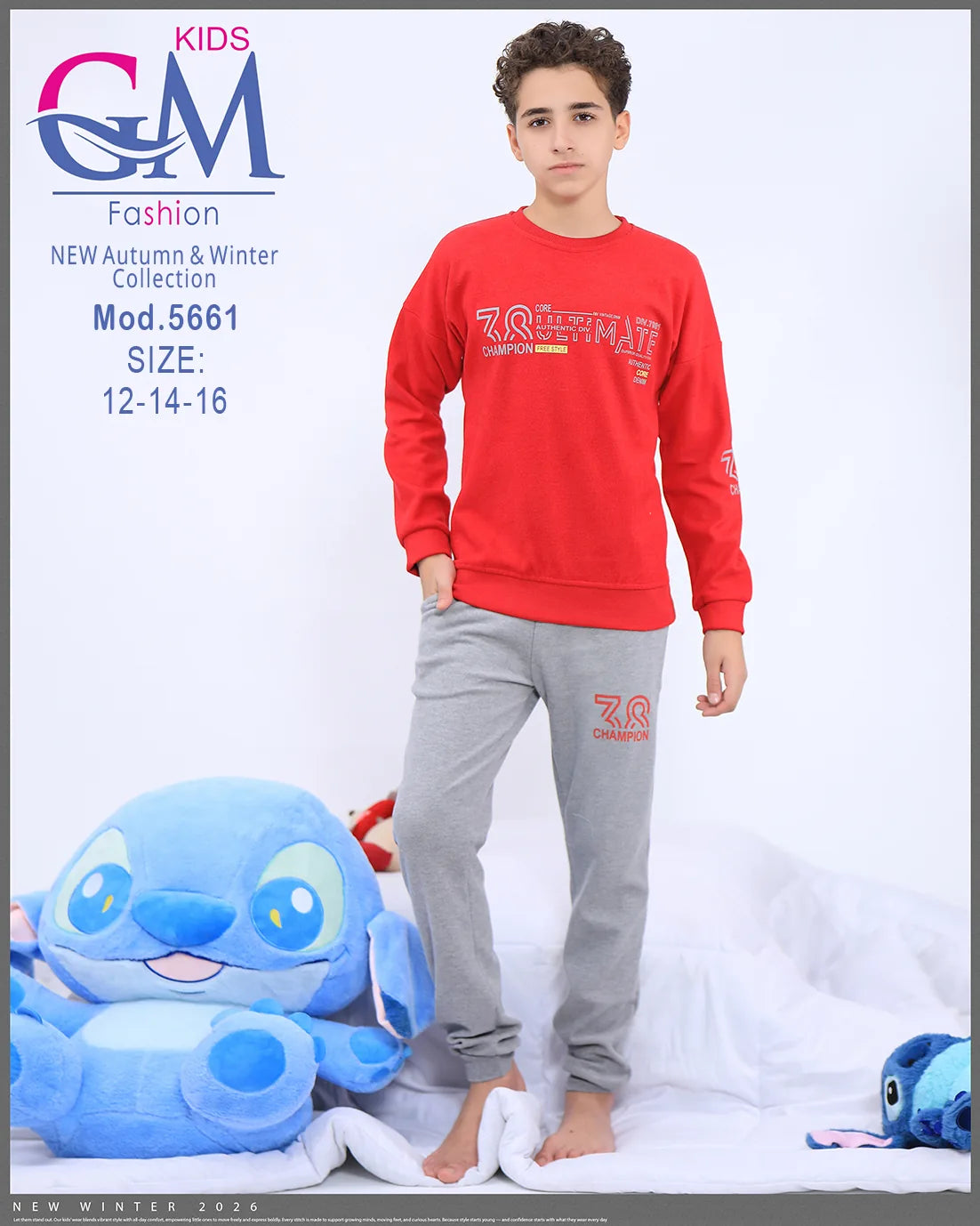 ترنج أولادي شتوي مريح وعصري من GM Kids بخامة قطنية دافئة وتصميم عملي يسهل الحركة. يتميز بستايل شبابي مع طبعات جذابة على التيشيرت والبنطلون لإطلالة حديثة تناسب الشتاء، مثالي للمنزل والخروج اليومي.
