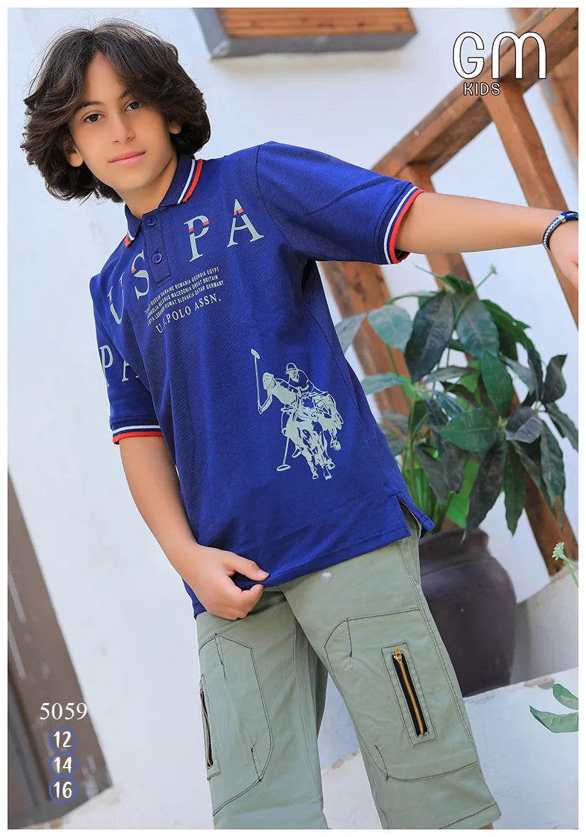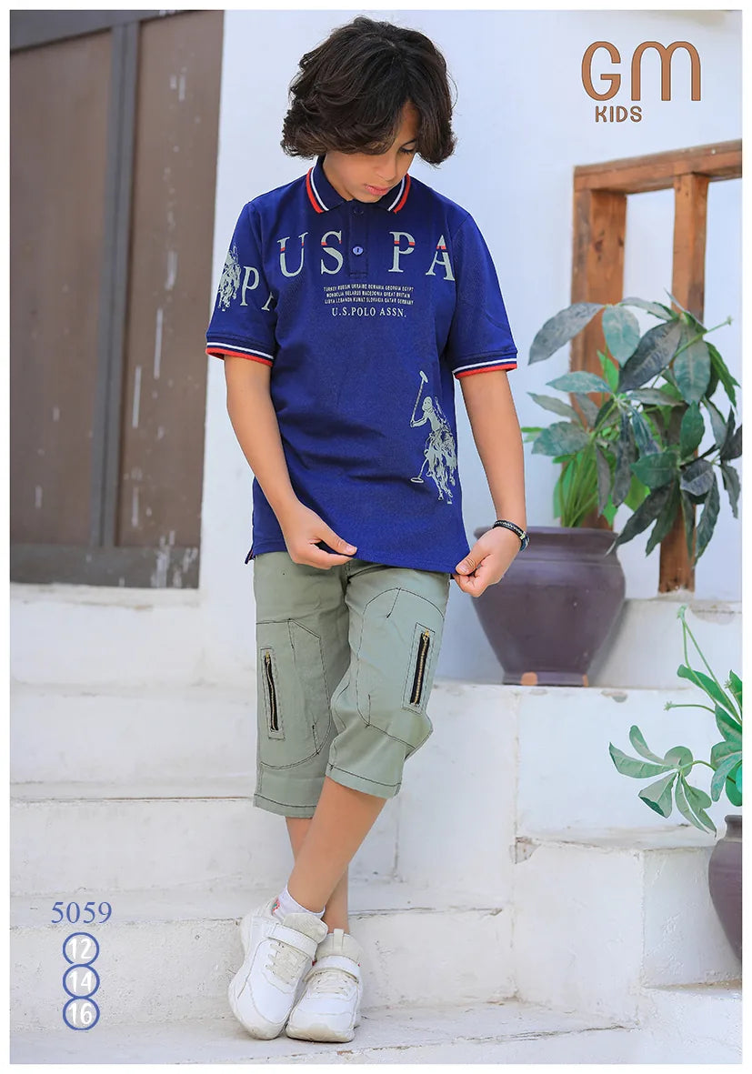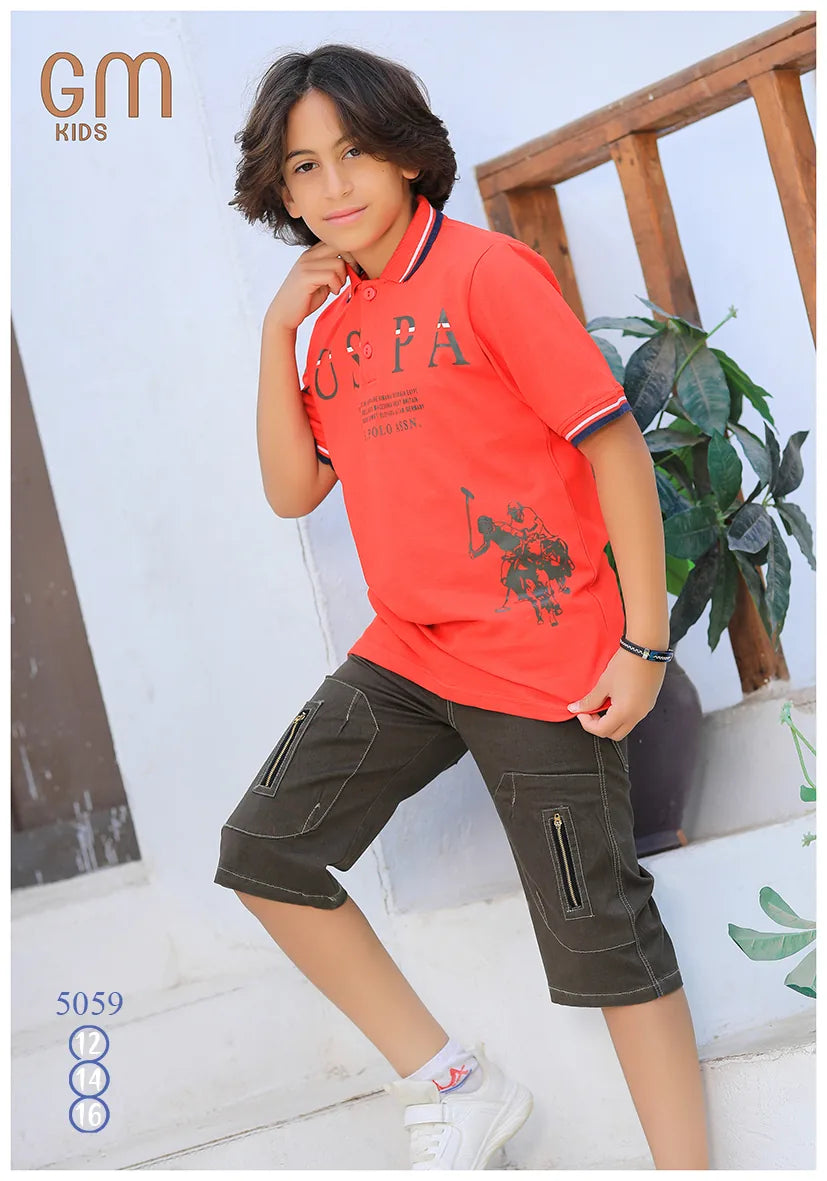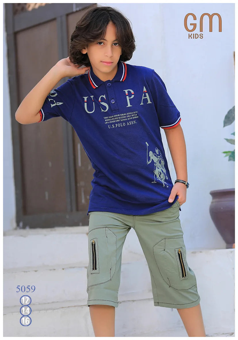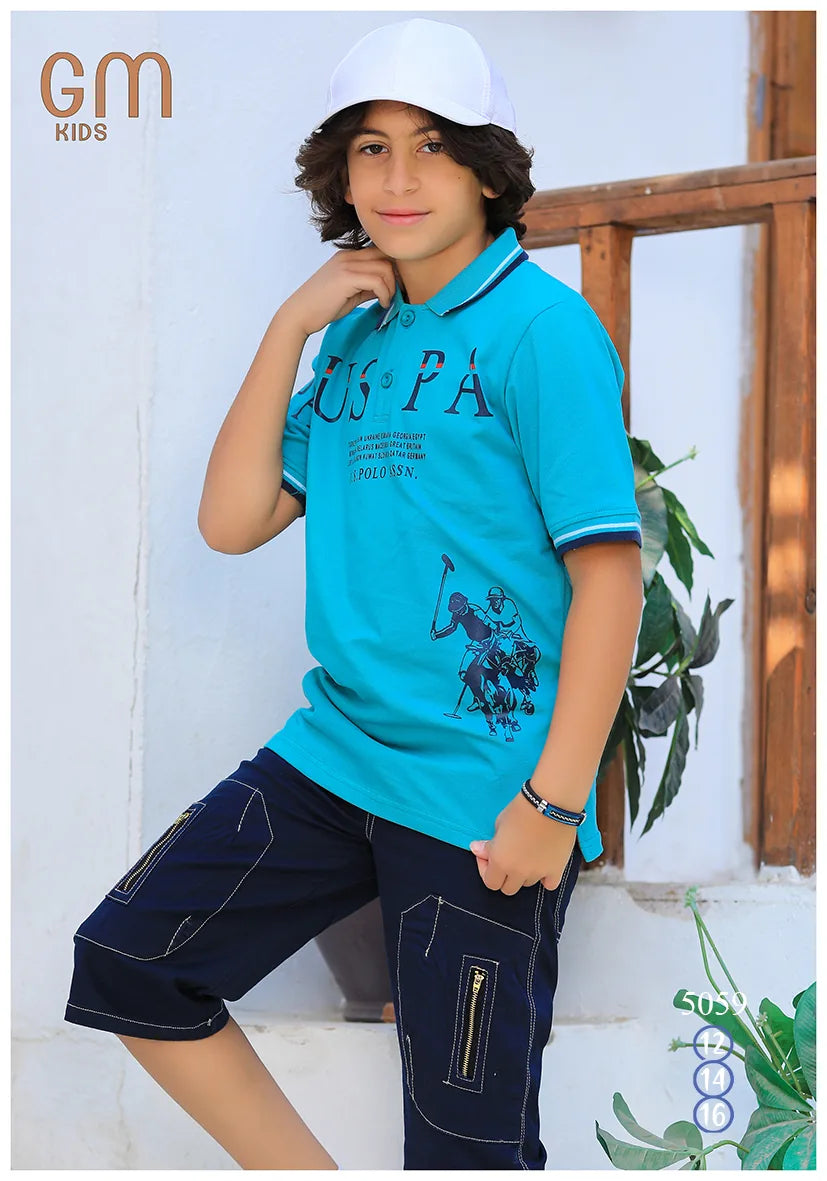 ترنج ولادي موديل 5059 من GM Kids خامة قطنية أنيقة للرجال، وتصميم مناسب برسومات تناسب كل الأذواق.- تيشيرت بولو برسمة مطبوعة - شورت كارجو متعدد الجيوب - متوفر بمقاسات: 12 – 14 – 16 سنة - خامة مناسبة لأيام الصيف والخروج اليومي مثالي لوادي، الصيف، أو خروج في يومي.