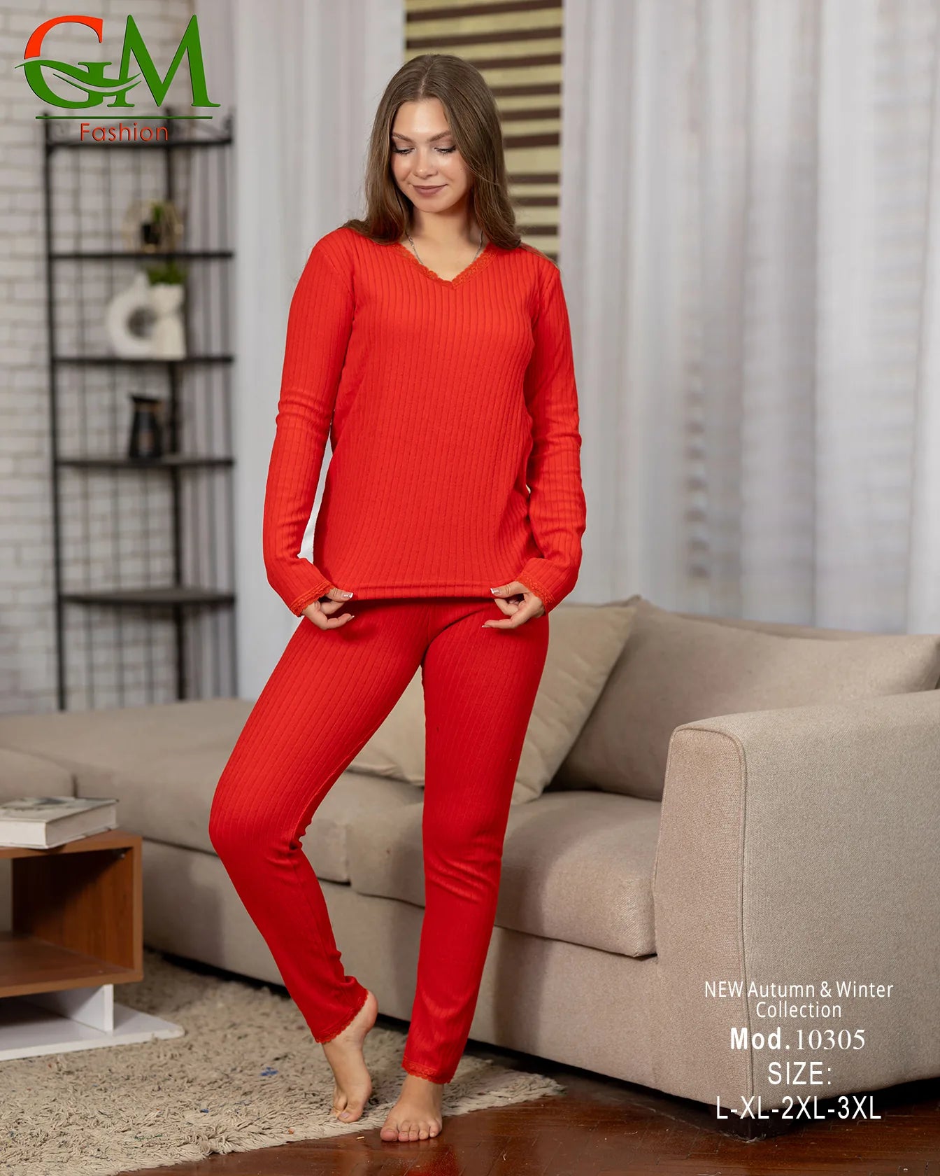 الدفا كله في بيجامة دفاية من GM Fashion، موديل 10305! الطقم قطعتين بخامة شتوية تقيلة وناعمة، وتصميمه ضيق بيلزق على الجسم عشان يضمن لكِ أقصى تدفئة في البرد القارص. البلوزة بياقة مدورة، والبنطلون ضيق وعملي. هي أحسن بيجامة دفاية للستات اللي بتدور على تدفئة تحت اللبس أو كـ ملابس بيت شتوية.