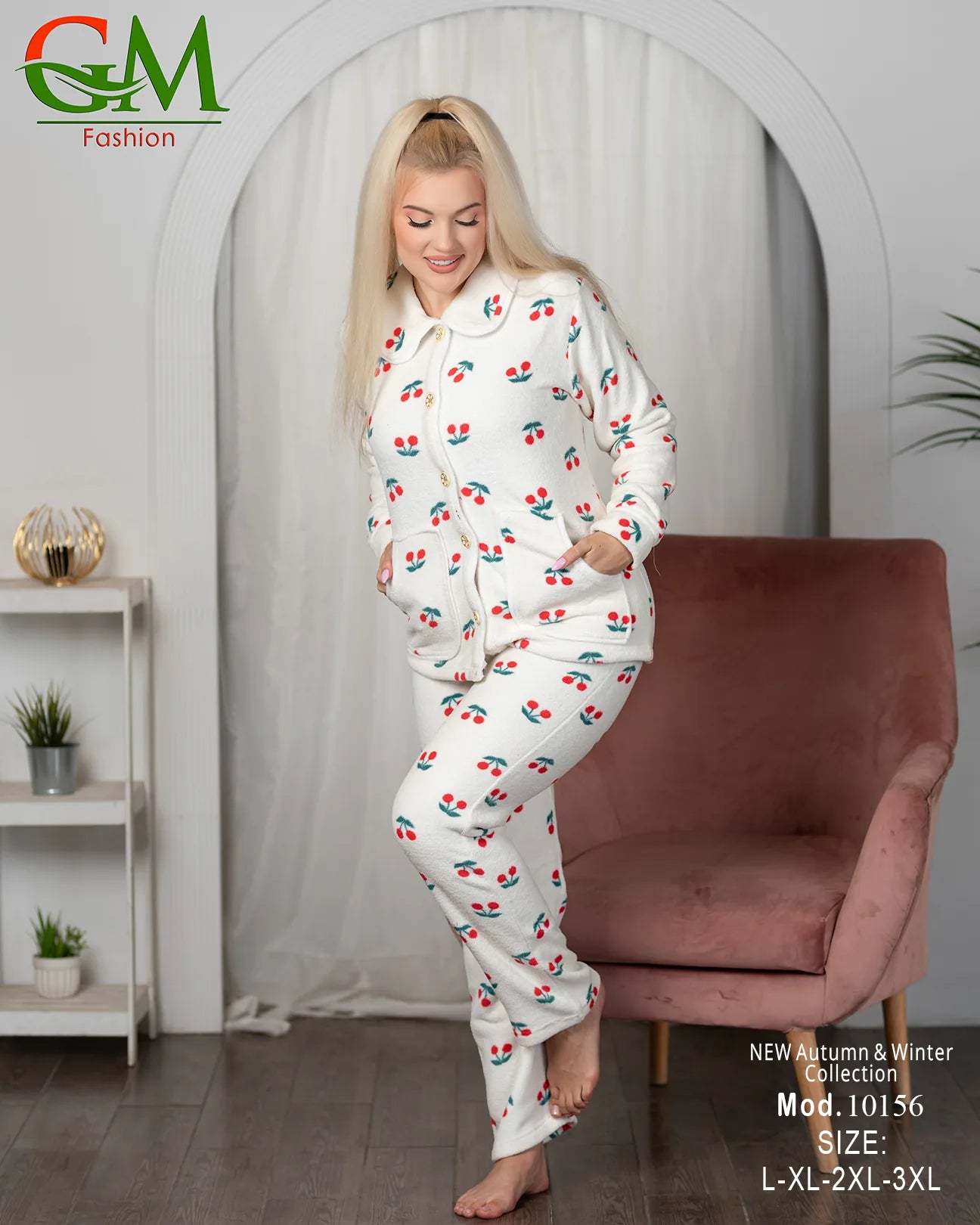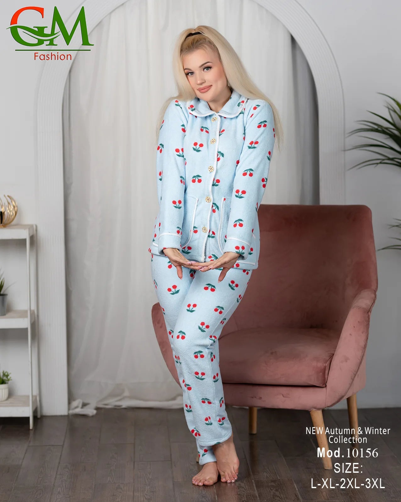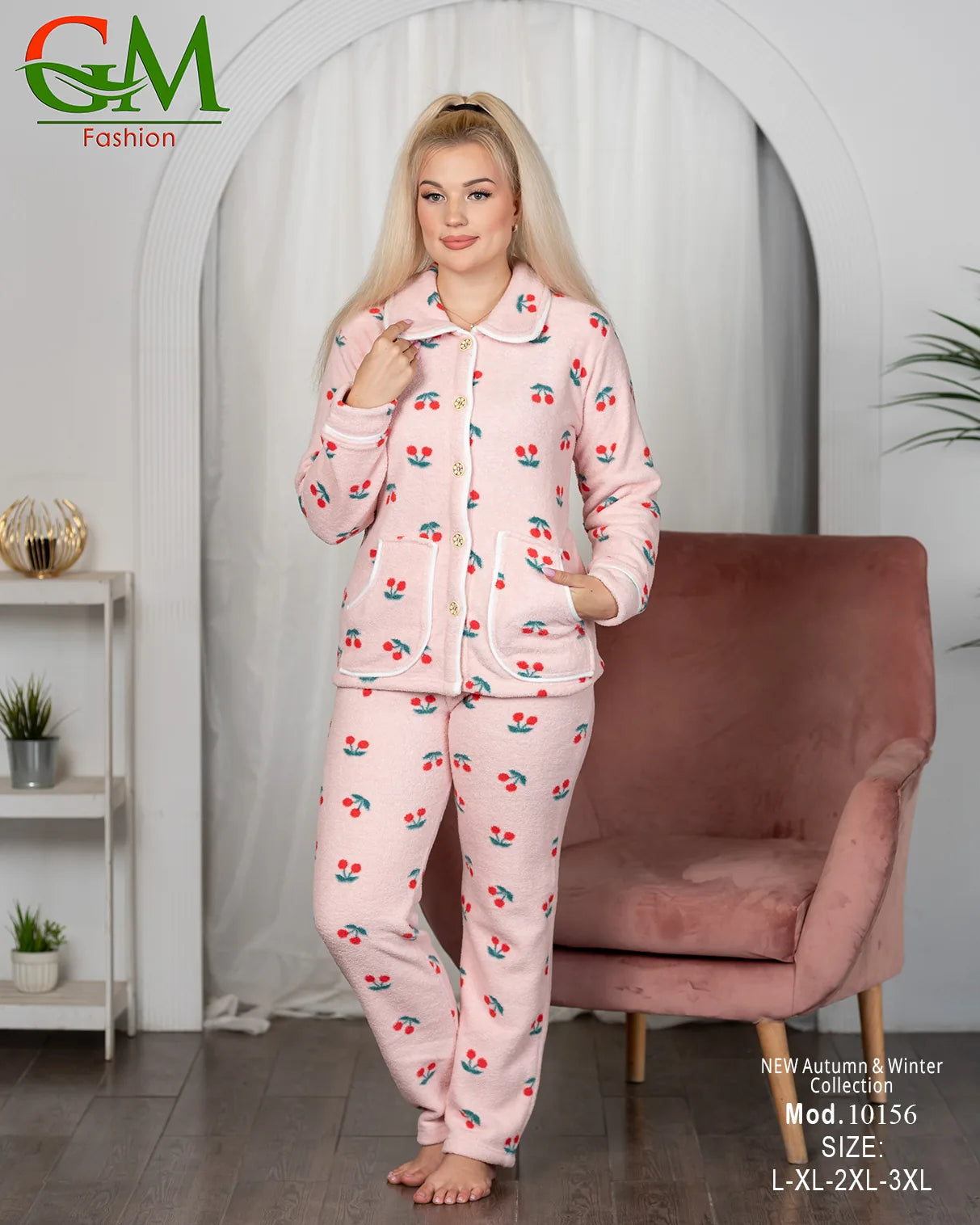 بيجامة حريمي بولار مبطن GM Fashion موديل 10156 | أطقم شتوي تقيلة للدفء