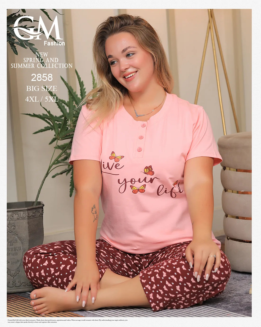 طقم بيتي حريمي قطن مقاس كبير – موديل 2858 صيفي من GM Fashion