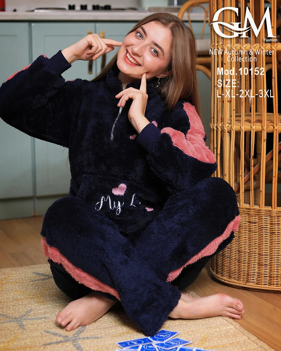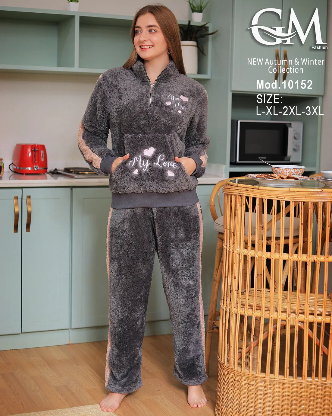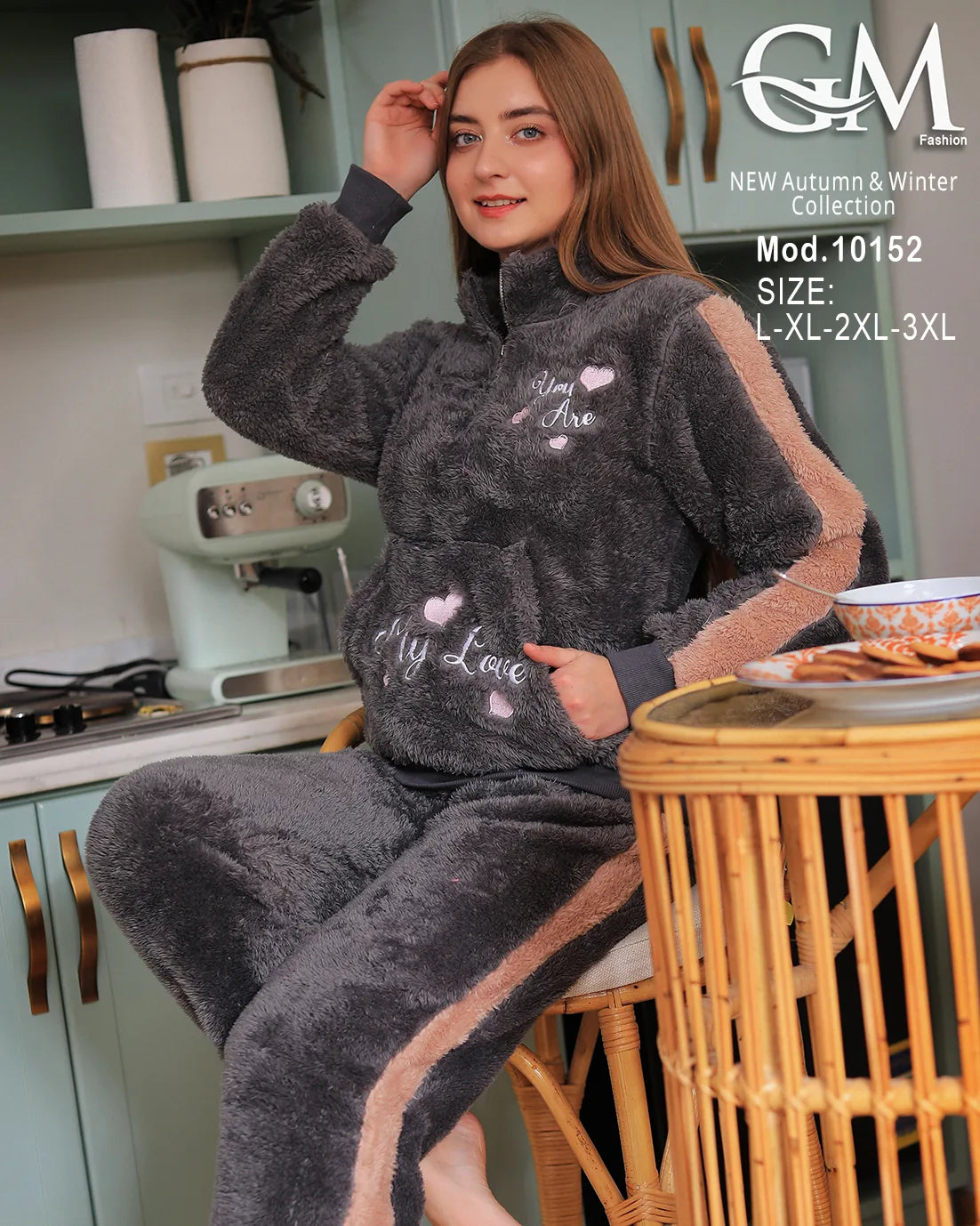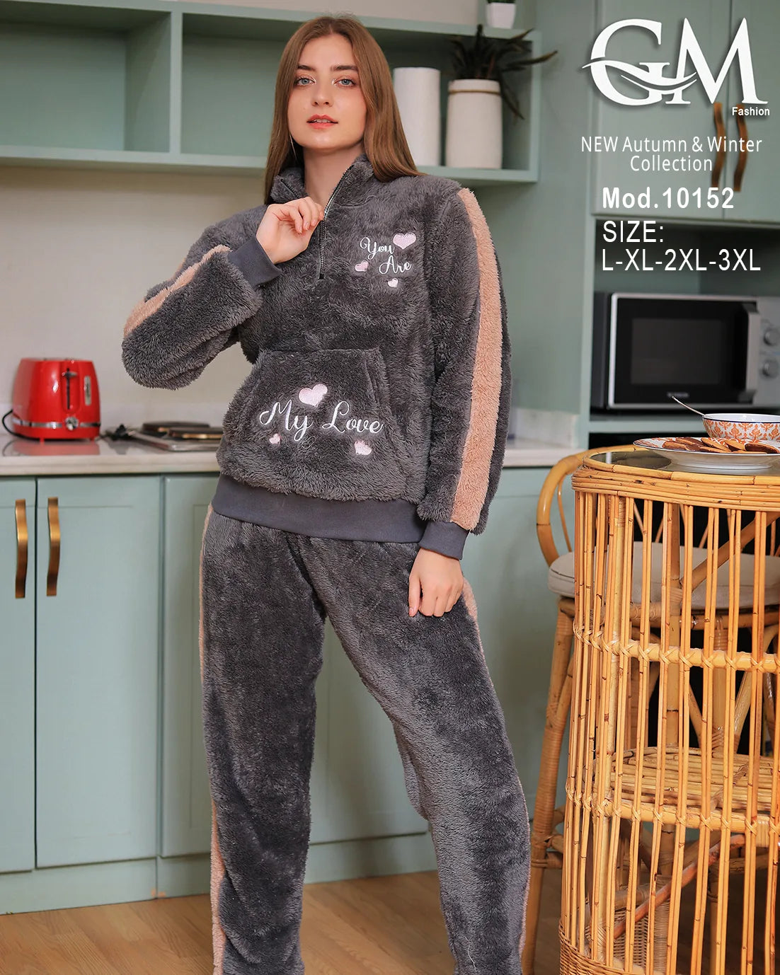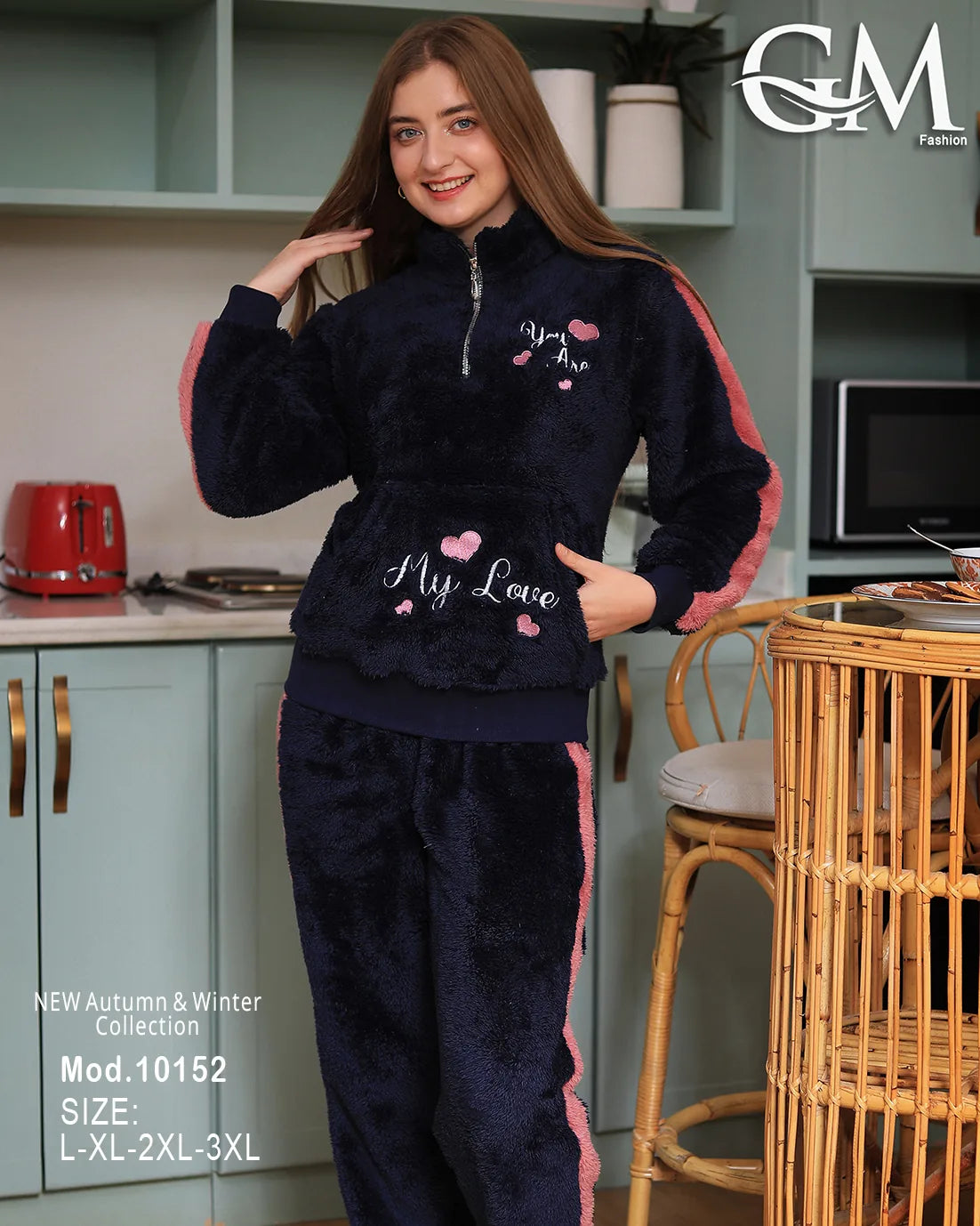 بيجامة شتوي حريمي من GM Fashion – تصميم عصري بخامة قطيفة ناعمة تمنحك الدفء والراحة في الشتاء.