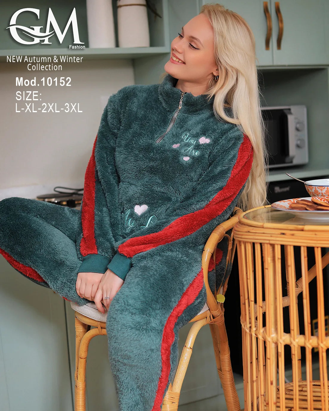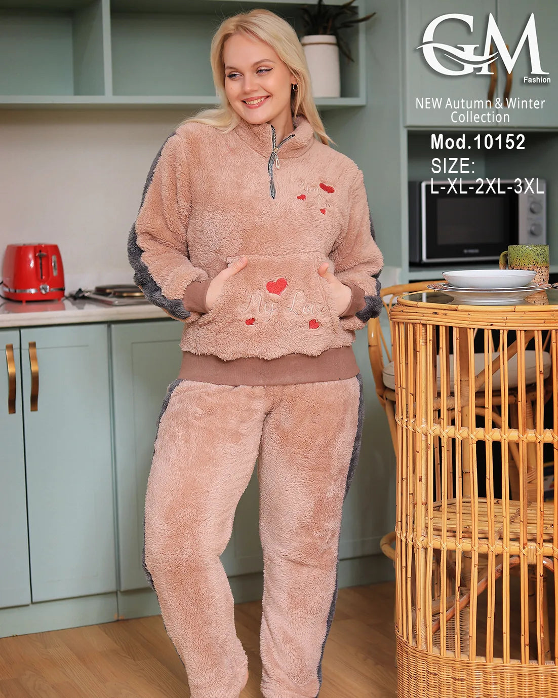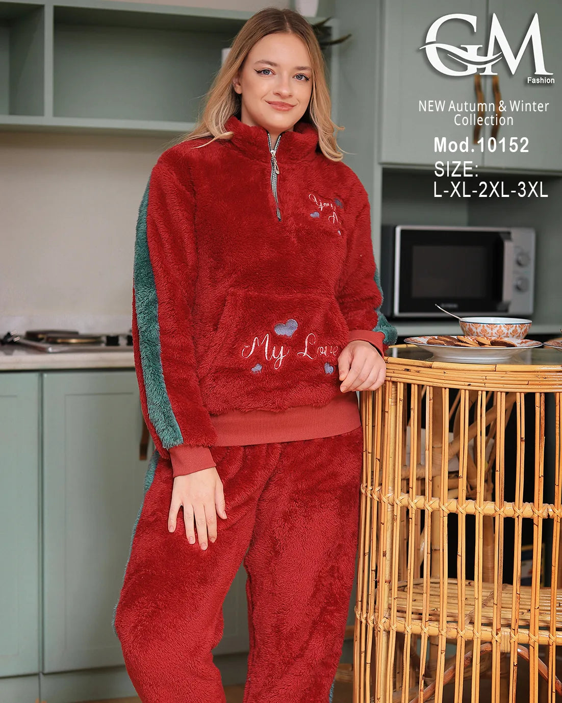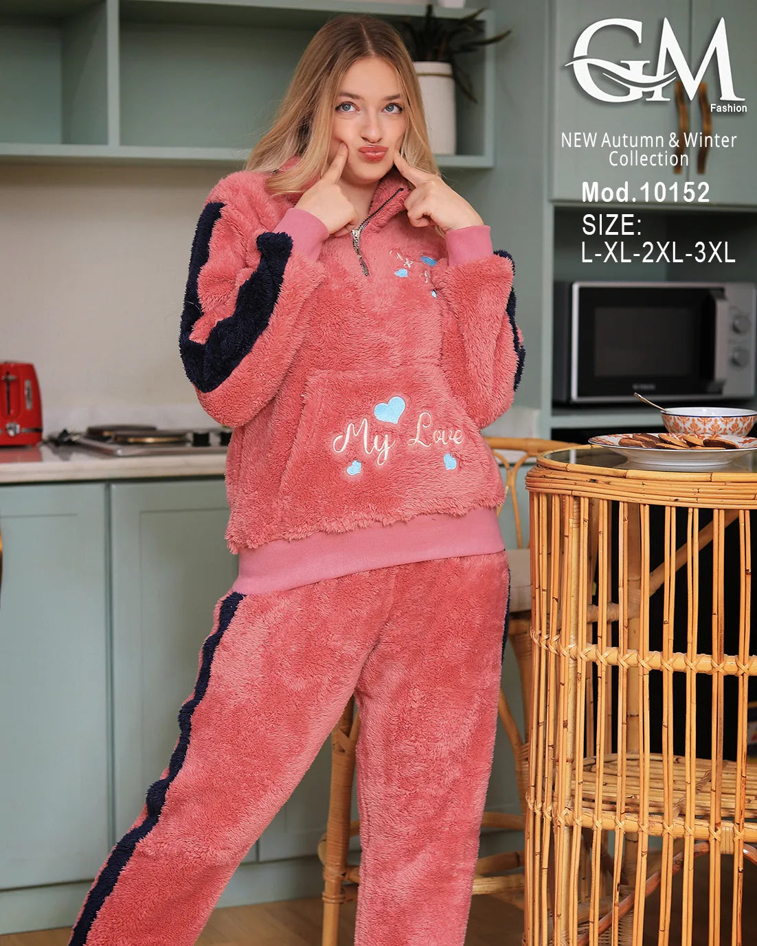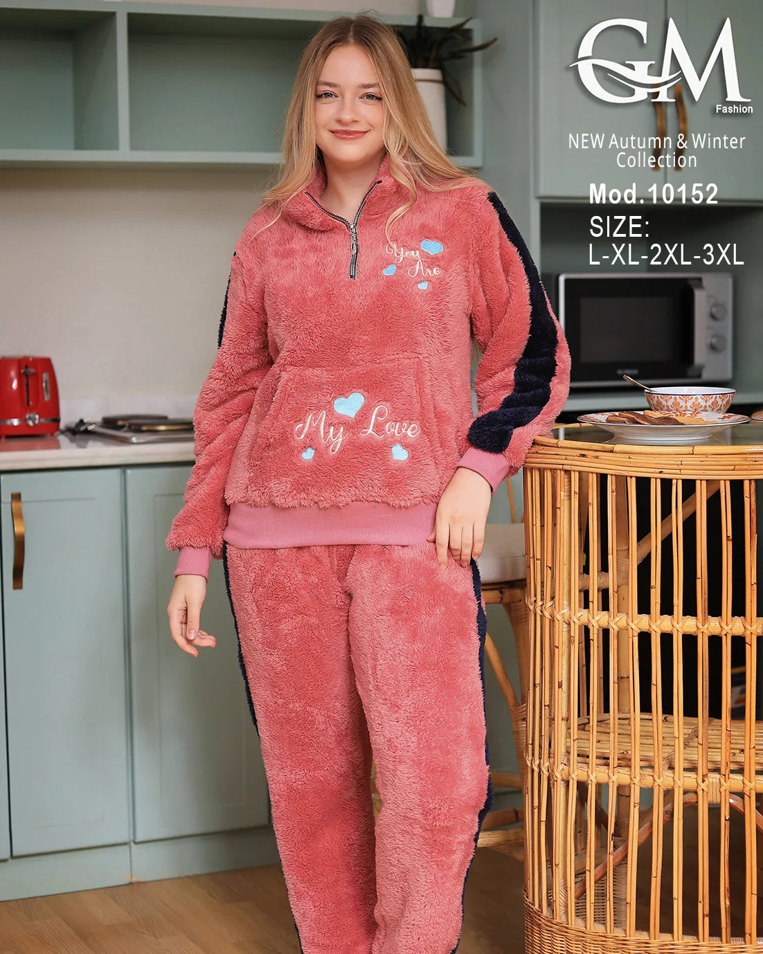 بيجامة شتوي حريمي من GM Fashion – تصميم عصري بخامة قطيفة ناعمة تمنحك الدفء والراحة في الشتاء.