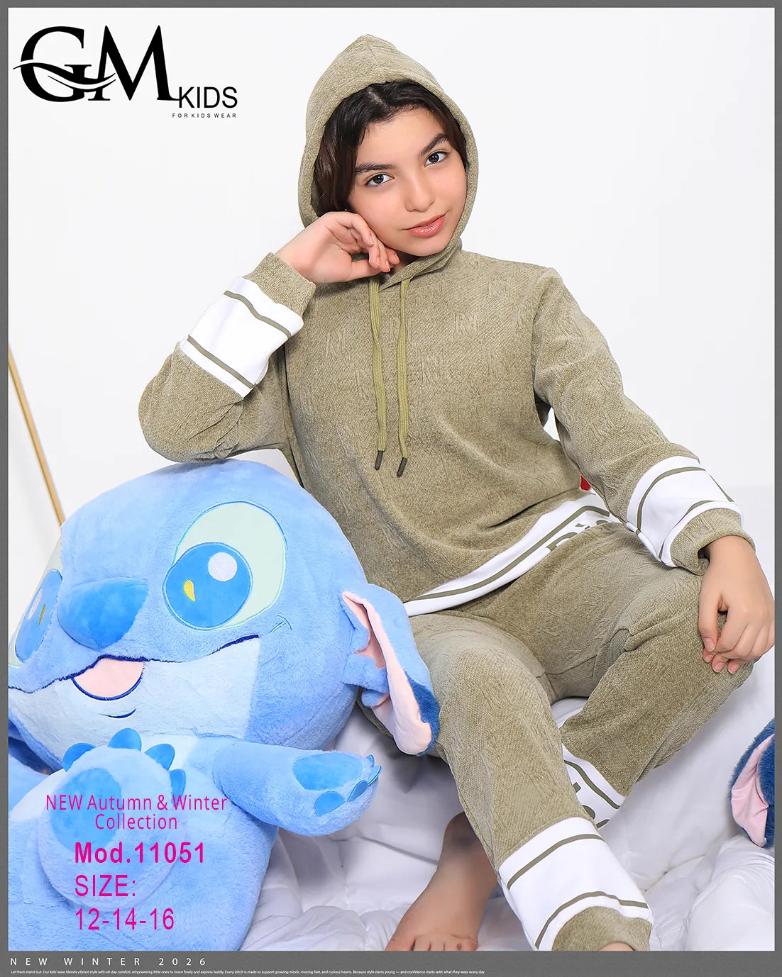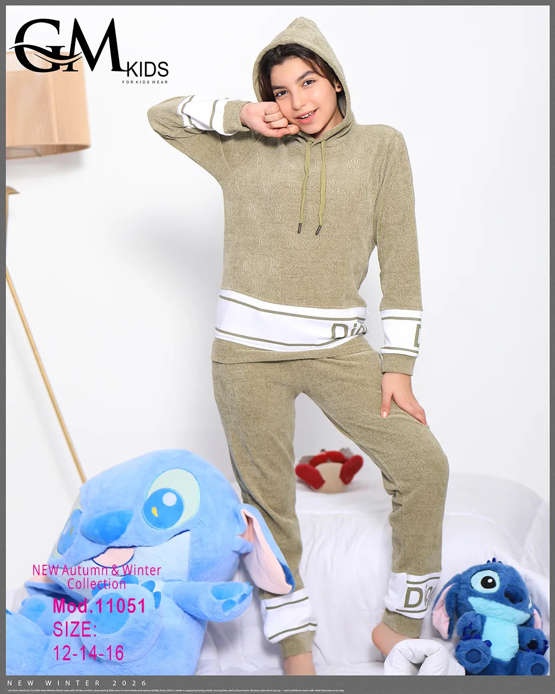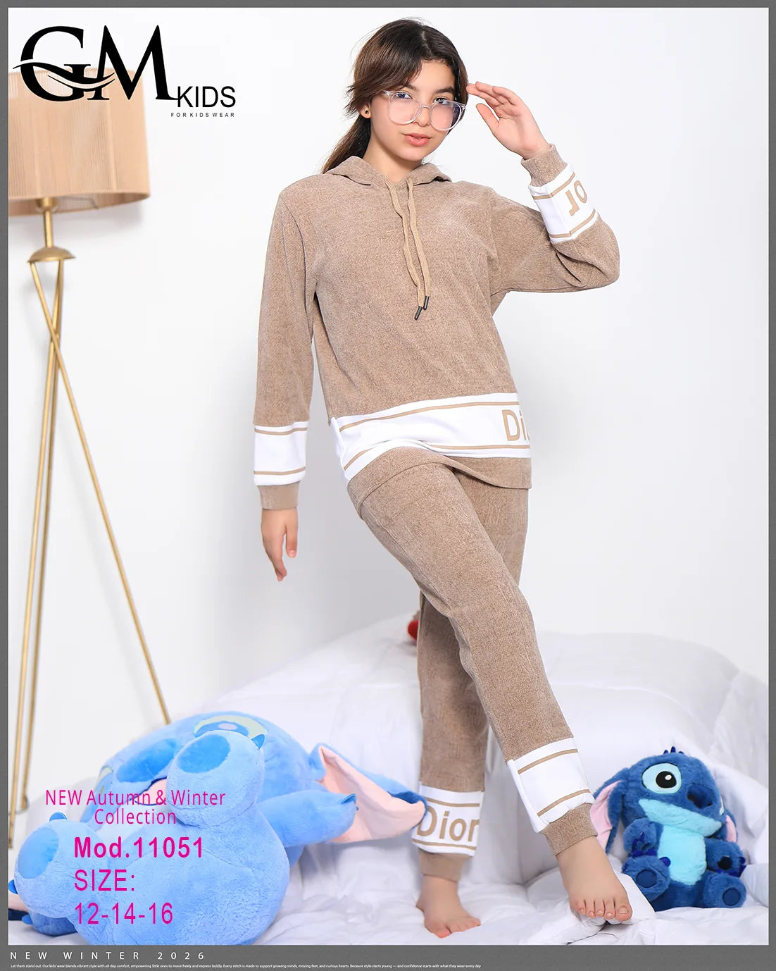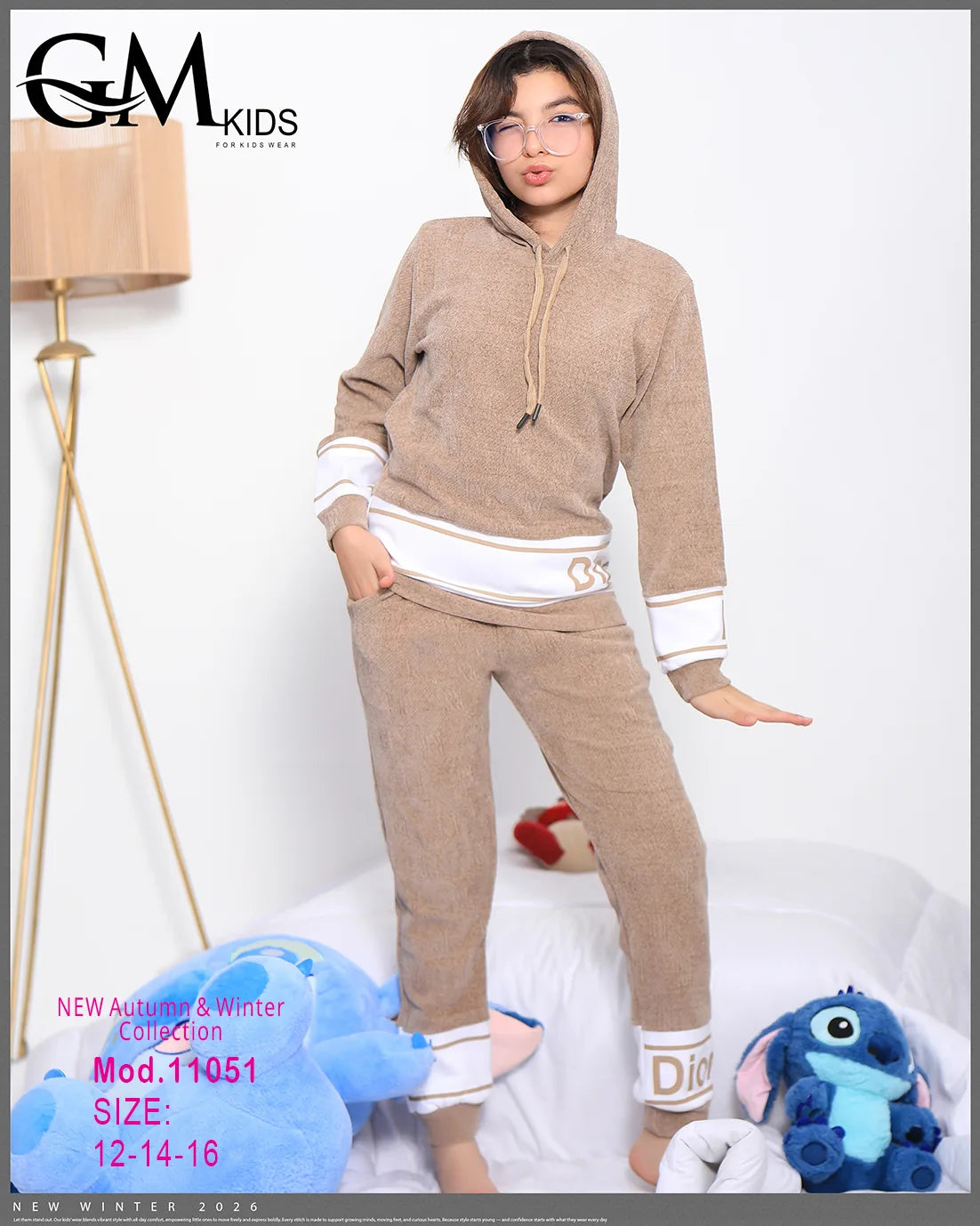 جددي خزانة ملابس صغيرتك الشتوية مع طقم البيجامة الأنيق من **GM Kids**، موديل **11051**. الطقم يتكون من قطعتين: بلوزة بأكمام طويلة مزينة **بطبعة "Happy" لطيفة** وبتفاصيل عصرية، وبنطلون طويل مريح بألوان متناسقة. مصنوع من **خامة شتوية ناعمة ودافئة**، مثالي للعب والنوم في ليالي الشتاء الباردة. متوفر بألوان جذابة ومقاسات تناسب الفتيات في مختلف الأعمار.