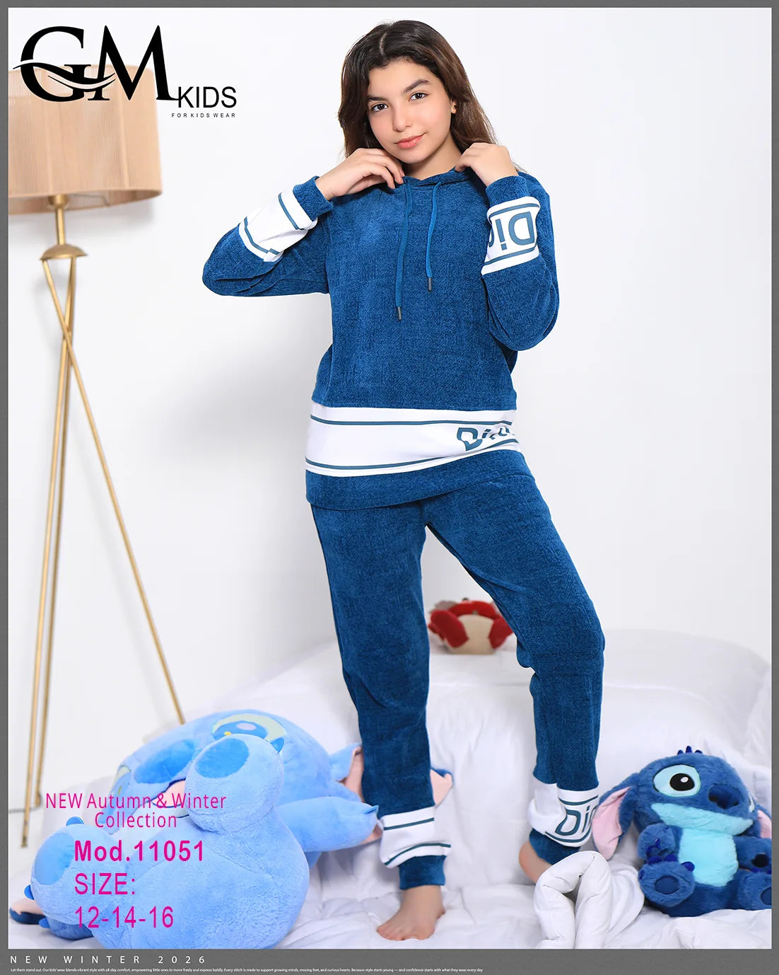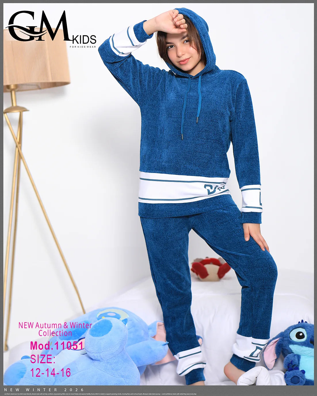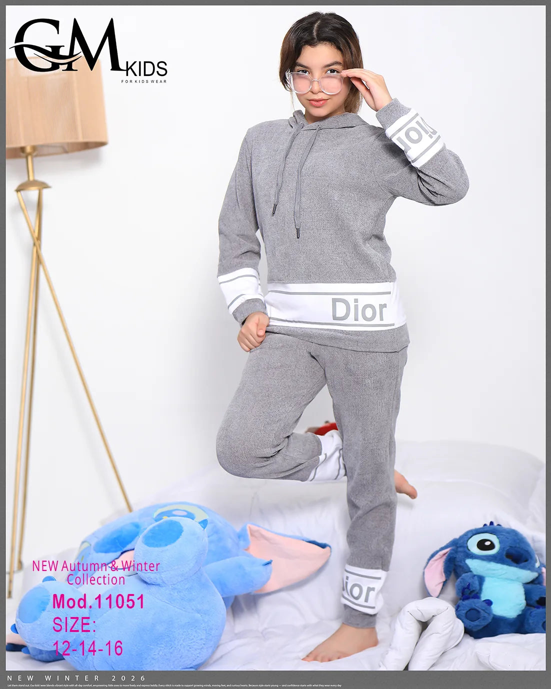 جددي خزانة ملابس صغيرتك الشتوية مع طقم البيجامة الأنيق من **GM Kids**، موديل **11051**. الطقم يتكون من قطعتين: بلوزة بأكمام طويلة مزينة **بطبعة "Happy" لطيفة** وبتفاصيل عصرية، وبنطلون طويل مريح بألوان متناسقة. مصنوع من **خامة شتوية ناعمة ودافئة**، مثالي للعب والنوم في ليالي الشتاء الباردة. متوفر بألوان جذابة ومقاسات تناسب الفتيات في مختلف الأعمار.