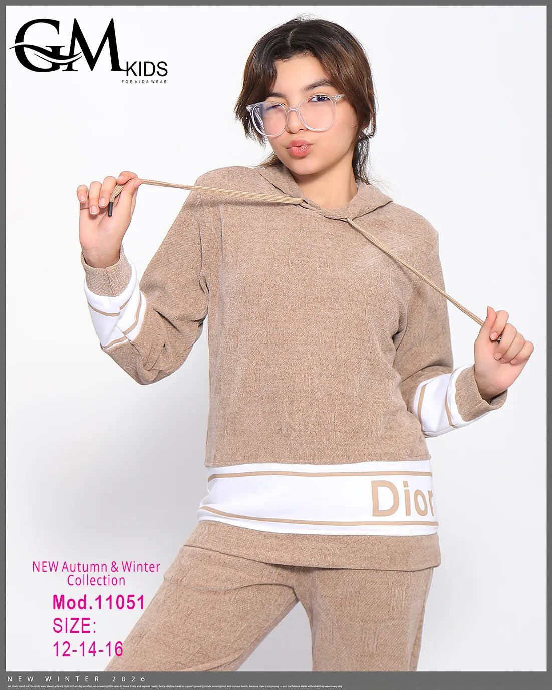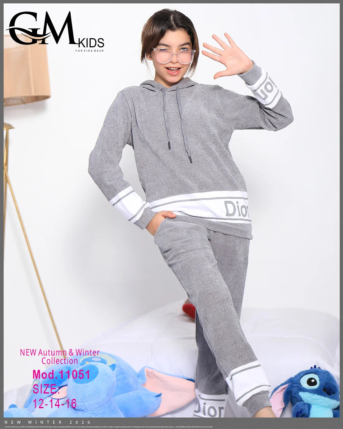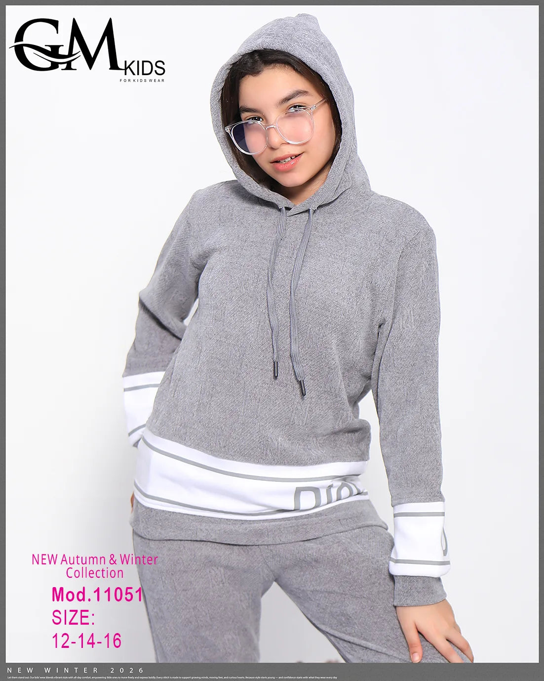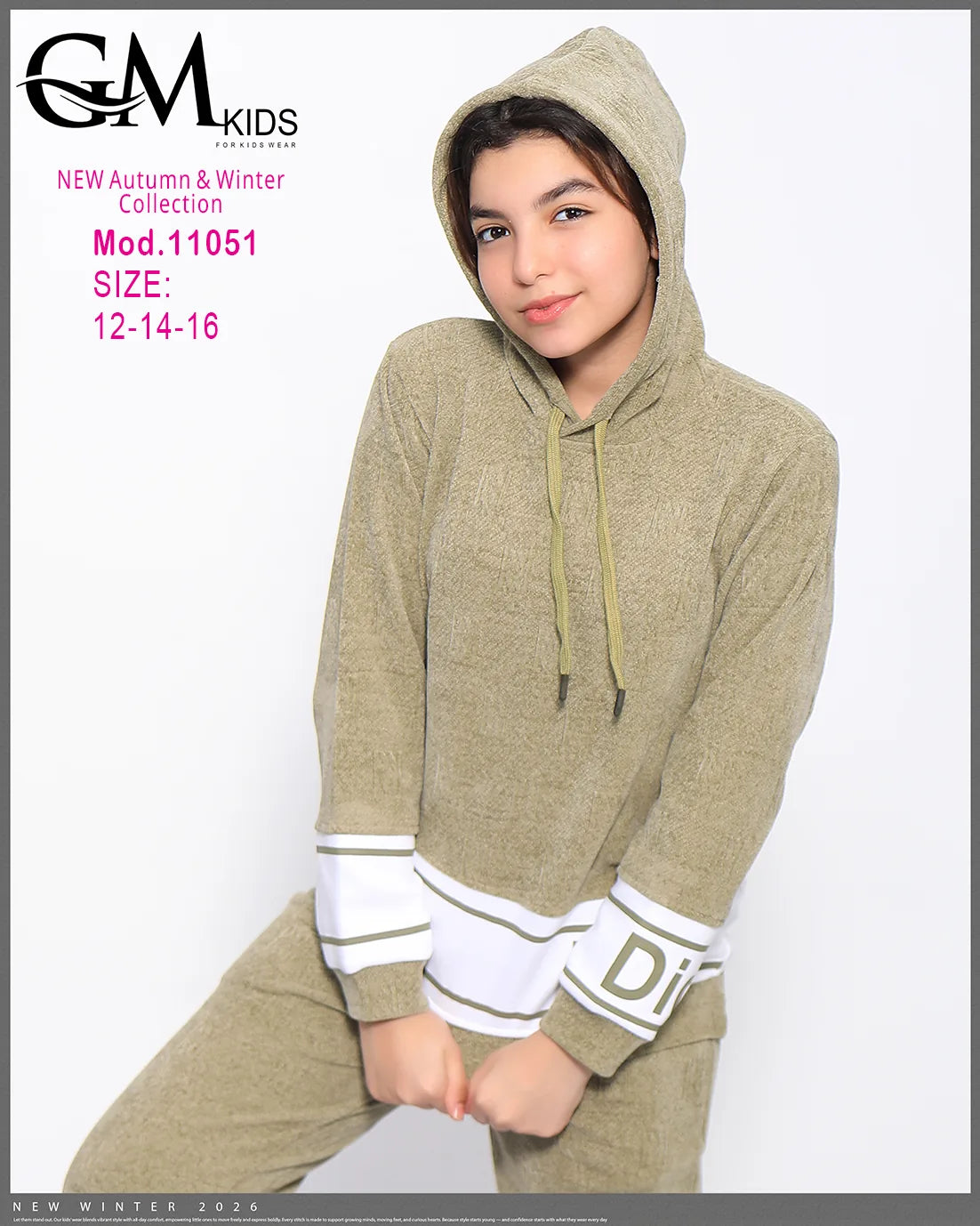 جددي خزانة ملابس صغيرتك الشتوية مع طقم البيجامة الأنيق من **GM Kids**، موديل **11051**. الطقم يتكون من قطعتين: بلوزة بأكمام طويلة مزينة **بطبعة "Happy" لطيفة** وبتفاصيل عصرية، وبنطلون طويل مريح بألوان متناسقة. مصنوع من **خامة شتوية ناعمة ودافئة**، مثالي للعب والنوم في ليالي الشتاء الباردة. متوفر بألوان جذابة ومقاسات تناسب الفتيات في مختلف الأعمار.