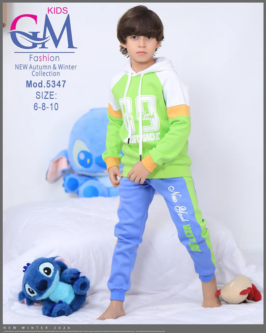 طقم بيجامة أطفال شتوي GM Kids | موديل 5347 بتطريز أنيق