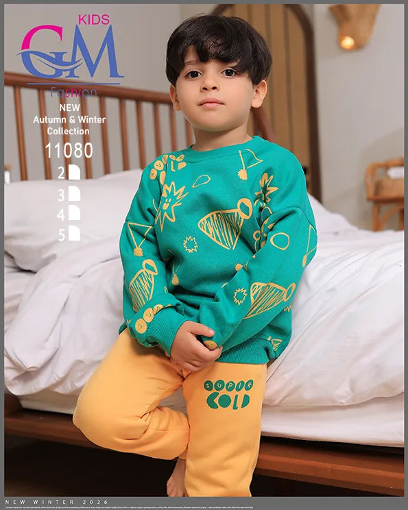 ترنج شتوي أولادي عملي ودافئ من خامة الميلتون القطني المريحة، تصميم عصري برسومات كاجوال تضيف حيوية لإطلالة طفلك. جاكت وبنطلون بكم كامل ومقاسات مناسبة من 2 حتى 5 سنوات.