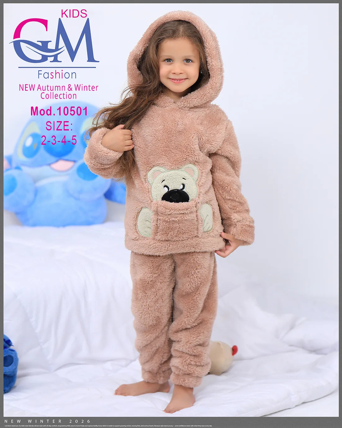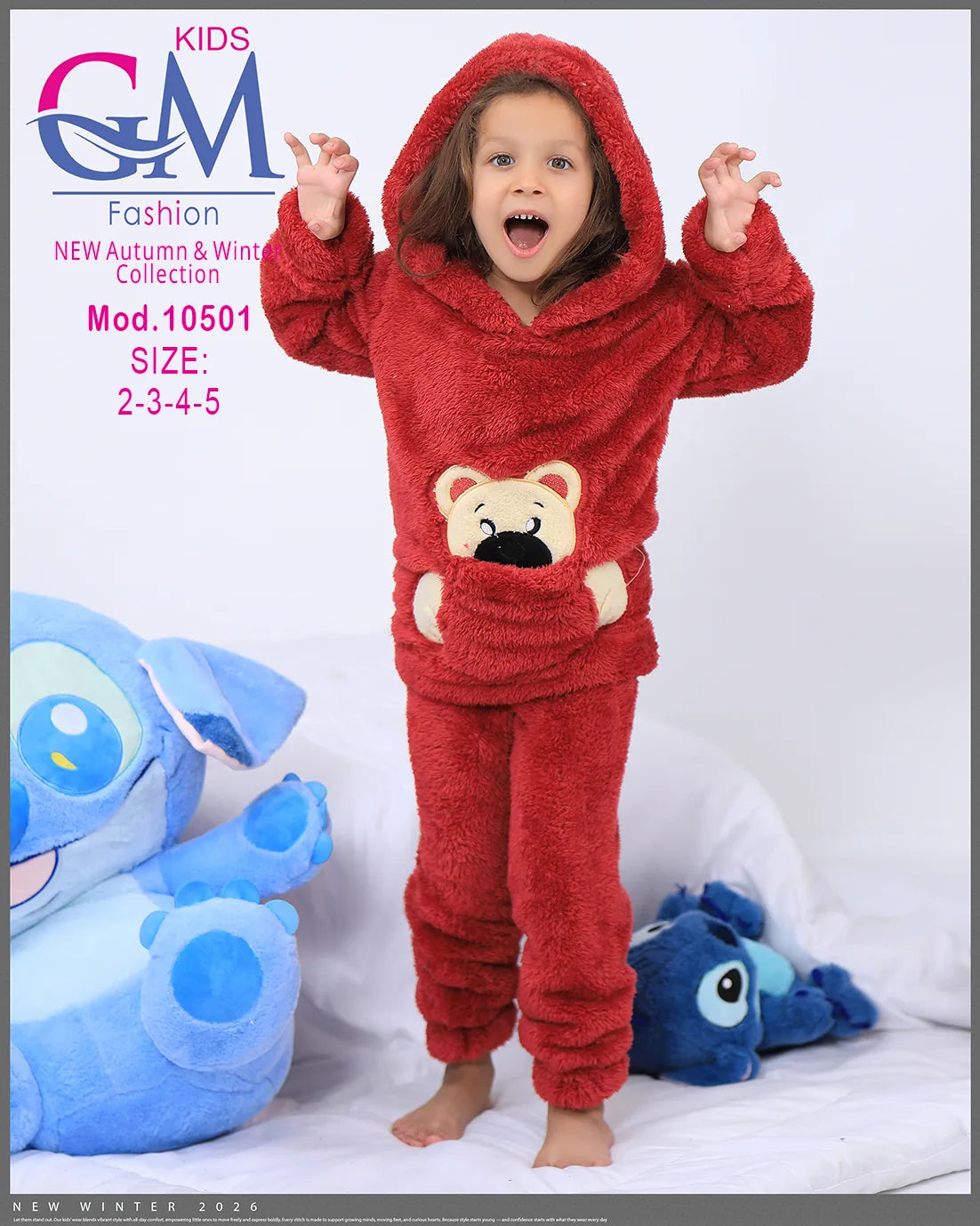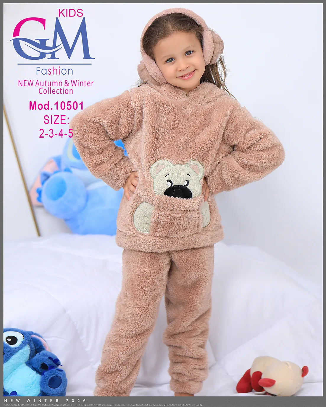 طقم شتوي للأطفال من GM Kids مصنوع من خامة الفرو الناعمة لدفء وراحة مثالية في الشتاء. يتميز بتصميم كابيشو عملي وجيب أمامي مطرز بدب لطيف يعطي مظهراً محبباً للصغار. خامة عالية الجودة تحافظ على دفء الطفل وحرية الحركة. متوفر بألوان متعددة تناسب جميع الأذواق.