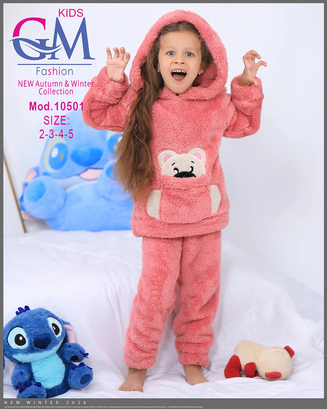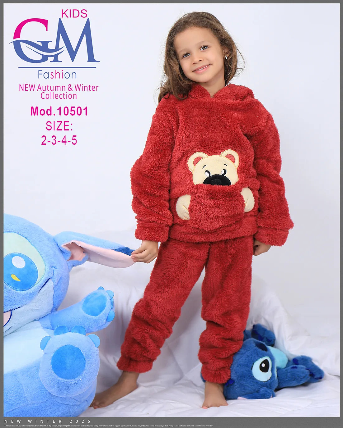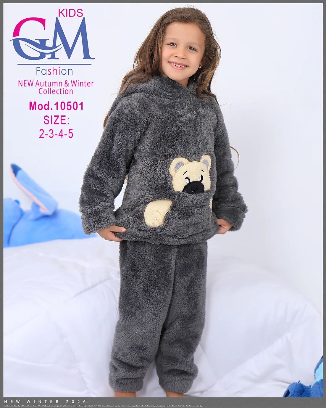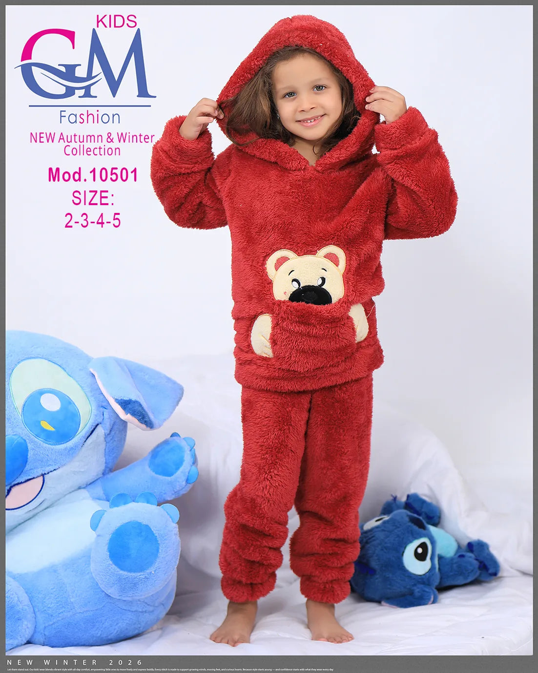 طقم شتوي للأطفال من GM Kids مصنوع من خامة الفرو الناعمة لدفء وراحة مثالية في الشتاء. يتميز بتصميم كابيشو عملي وجيب أمامي مطرز بدب لطيف يعطي مظهراً محبباً للصغار. خامة عالية الجودة تحافظ على دفء الطفل وحرية الحركة. متوفر بألوان متعددة تناسب جميع الأذواق.