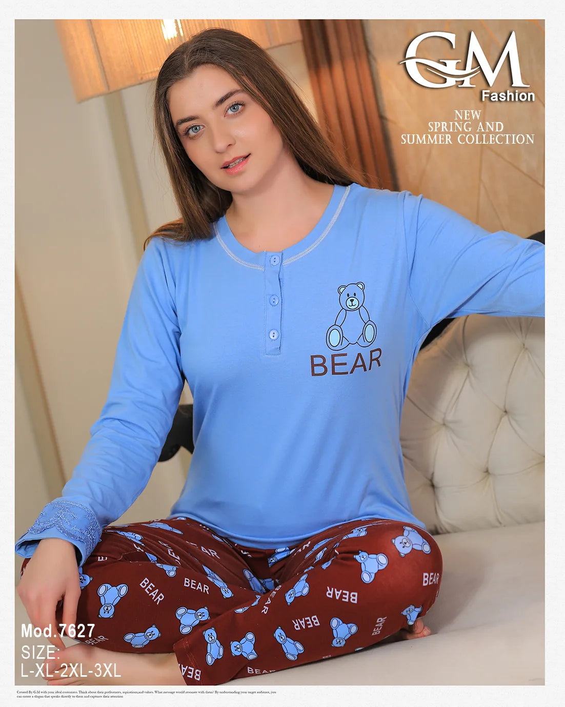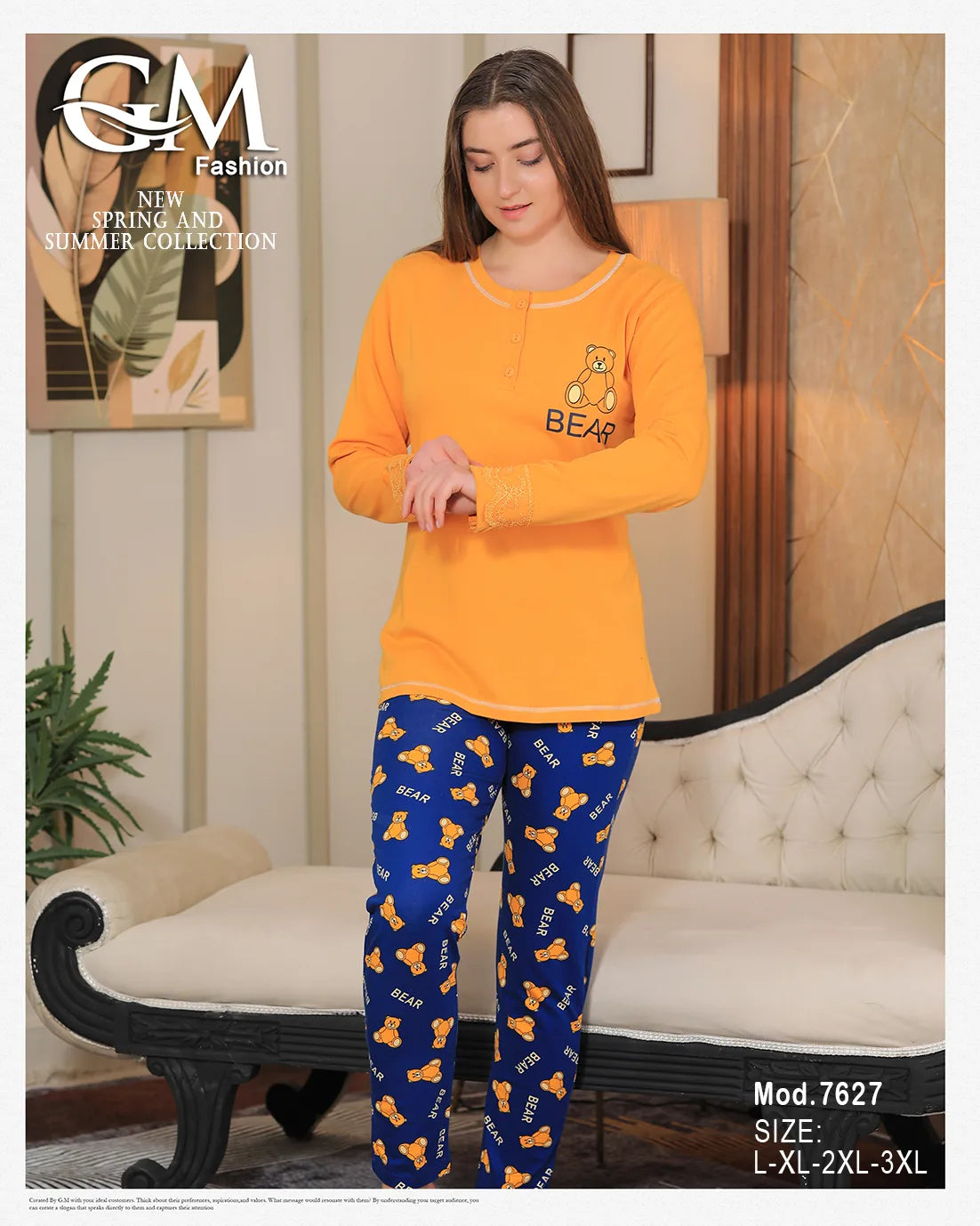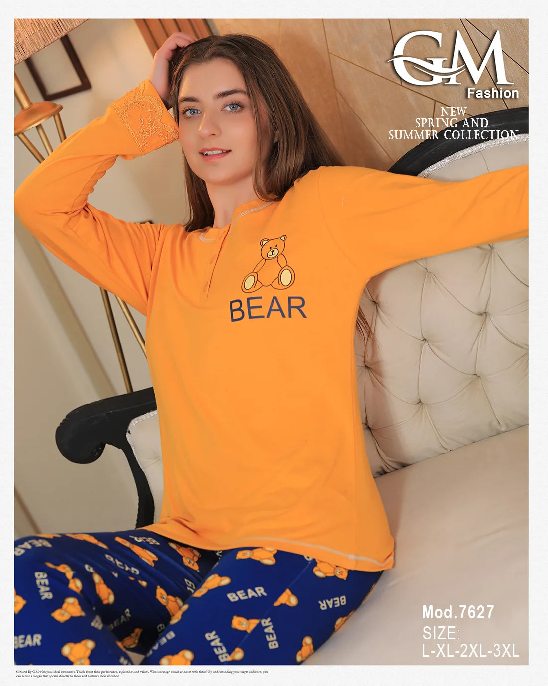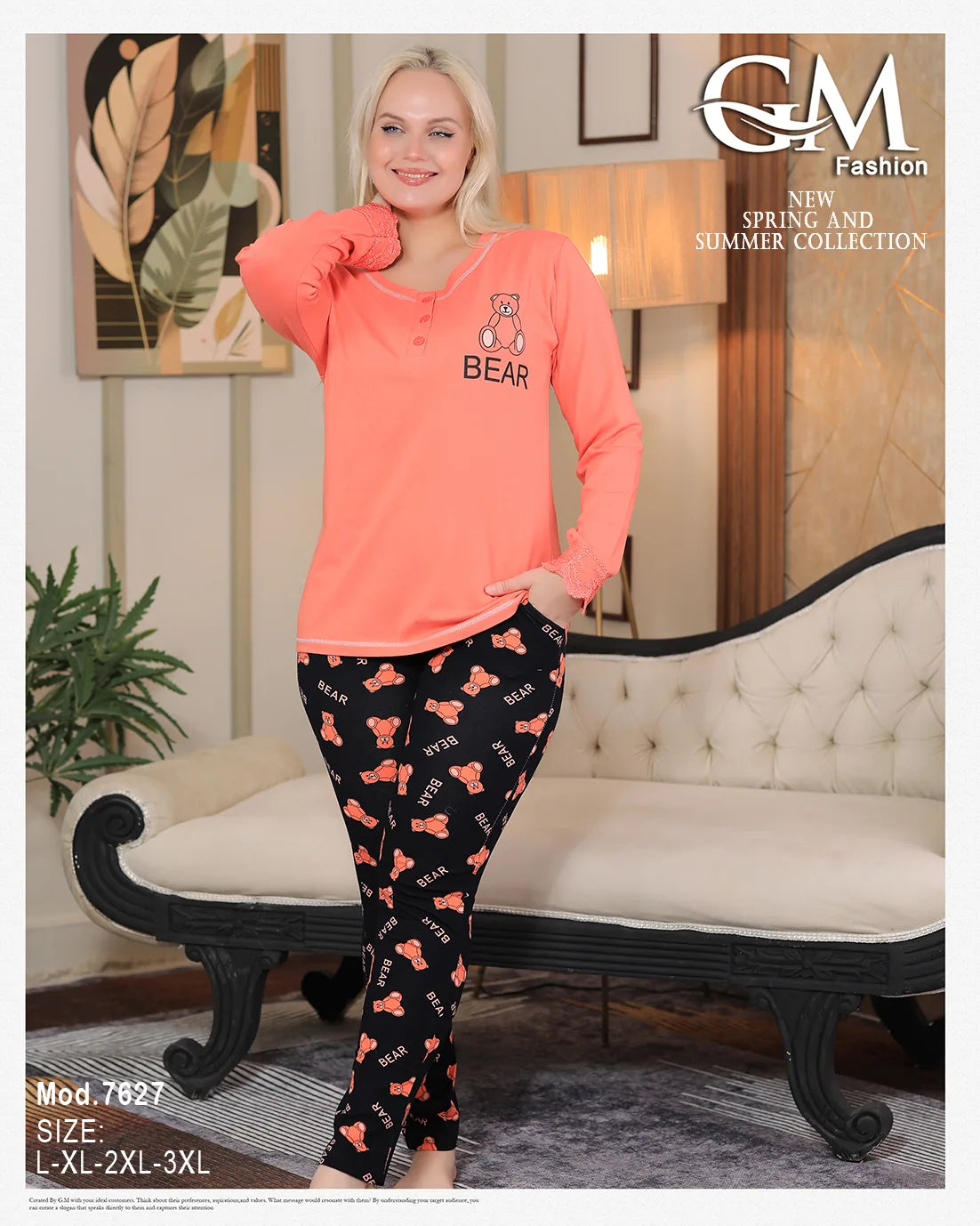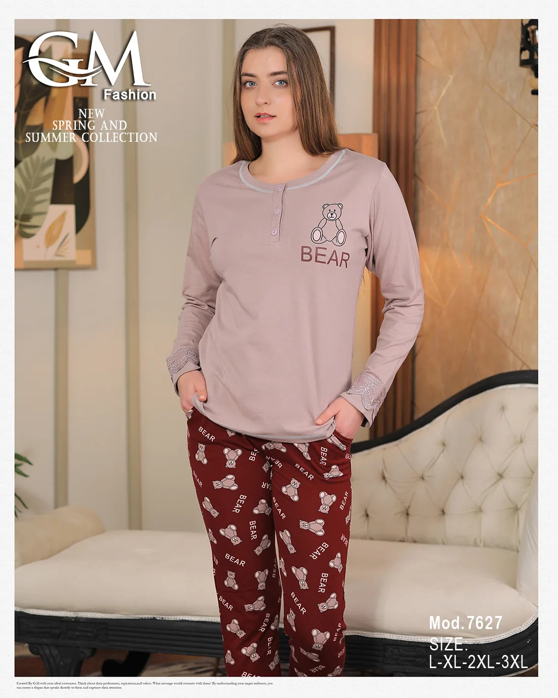 بيجامة حريمي ربيعي 7627 GM – قطن مريح بطبعات دب