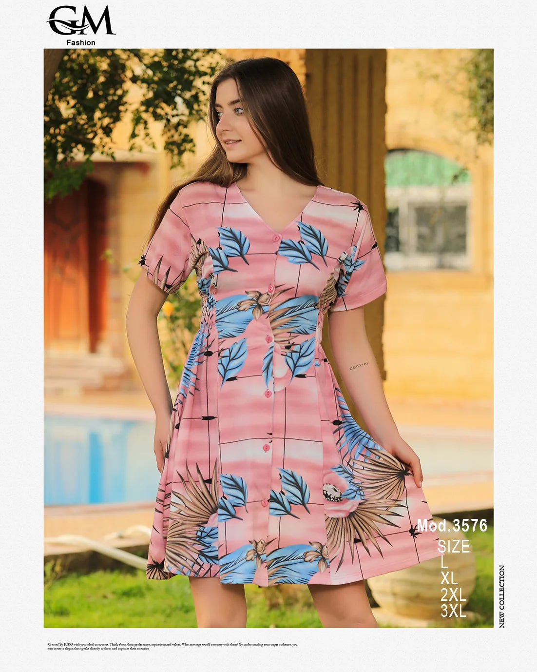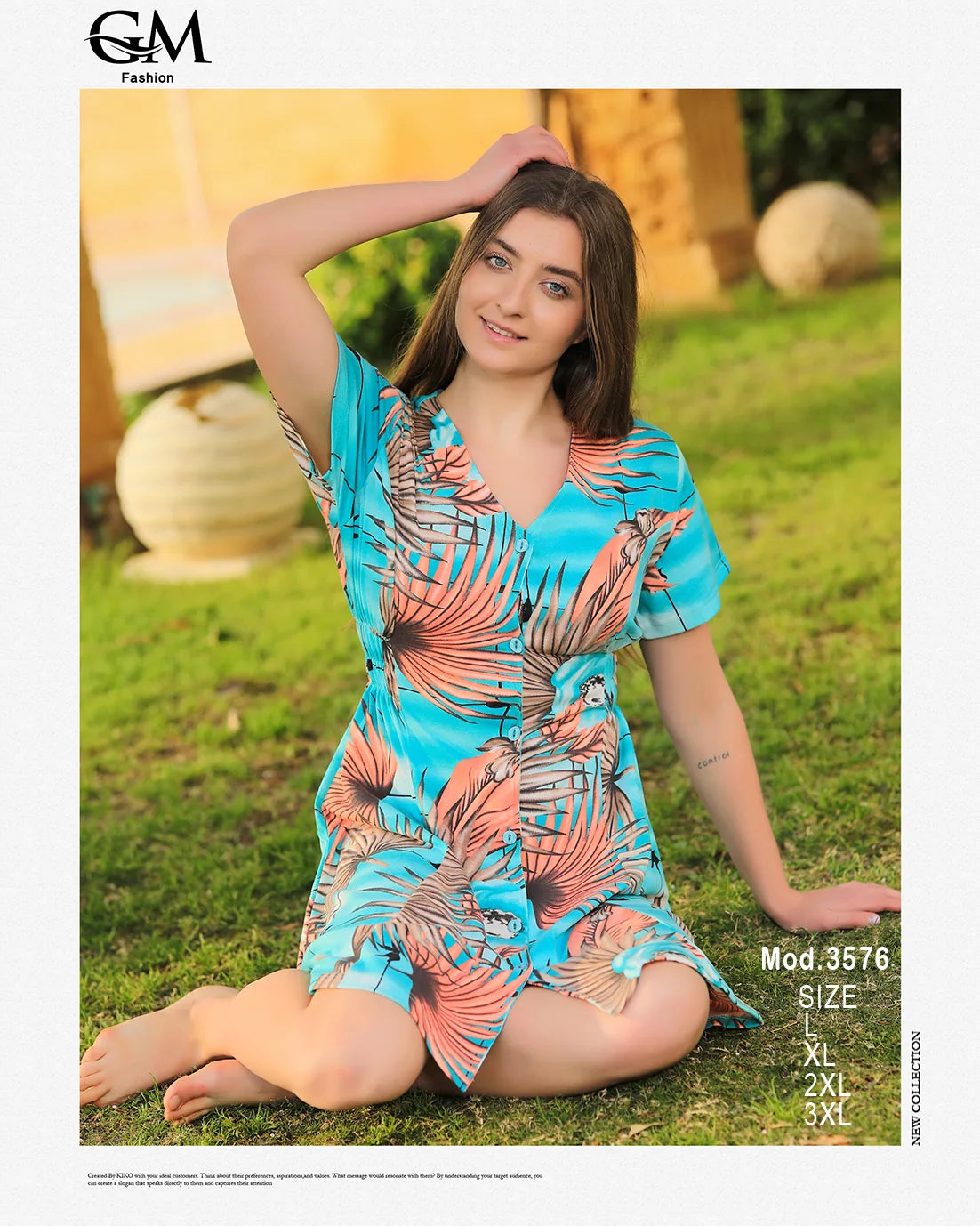 فستان بنقشة ورود استوائية – GM Fashion صيفي قصير 3576 استايل مفيد وفضفاض يتبع كل الأوقات الصيفية.- خامة قطن قصيرة المشاة- قصة اشتراك في حرية الحركة- طبعة ورود استوائية وألوان مبهجة تناسب الصيف- متوفر بمقاسات XL – 2XL – 3XL- يناسب خروج النهار أو الجلوس في المنزل أو موديل المصيف اختيار مثالي لكل سيدة تبحث عن الألوان الزهرية والشياكة في فصل الفصل.