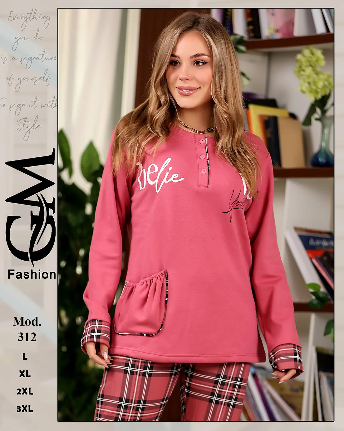 312طقم شتوي حريمي من GM Fashion خامة ميلتون قطيفي ناعم – موديل 312 – مقاسات حتى 3XL