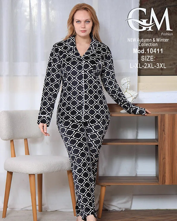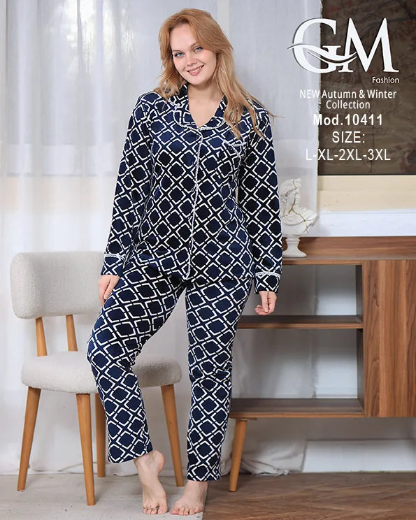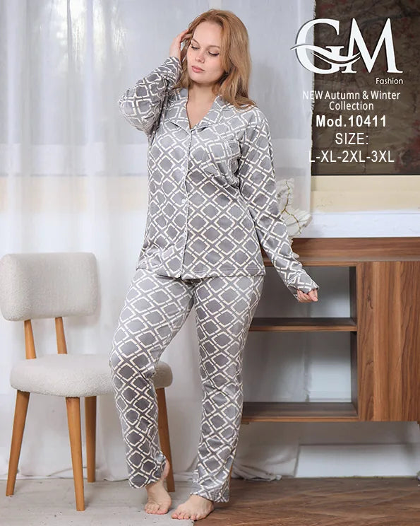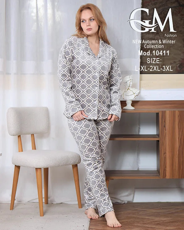 دلّعي راحتك مع بيجامة شتوي حريمي GM Fashion موديل 10411 المصنوعة من قطيفة شتوية ناعمة ودافئة تمنحك دفء وأناقة في البيت.