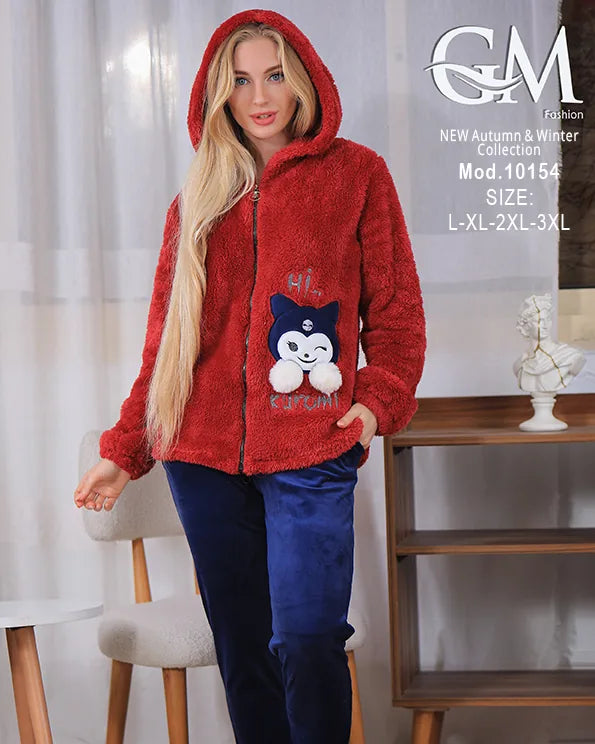 بيجامة شتوي حريمي بجاكيت بولار مبطن دافئ وألوان متنوعة – موديل 10154 – GM Fashion