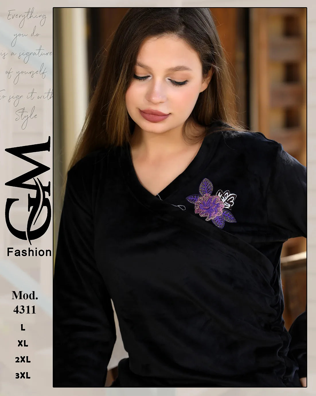 طقم هوم وير شتوي حريمي قطيفه قطعتين | موديل 4311 | GM Fashion