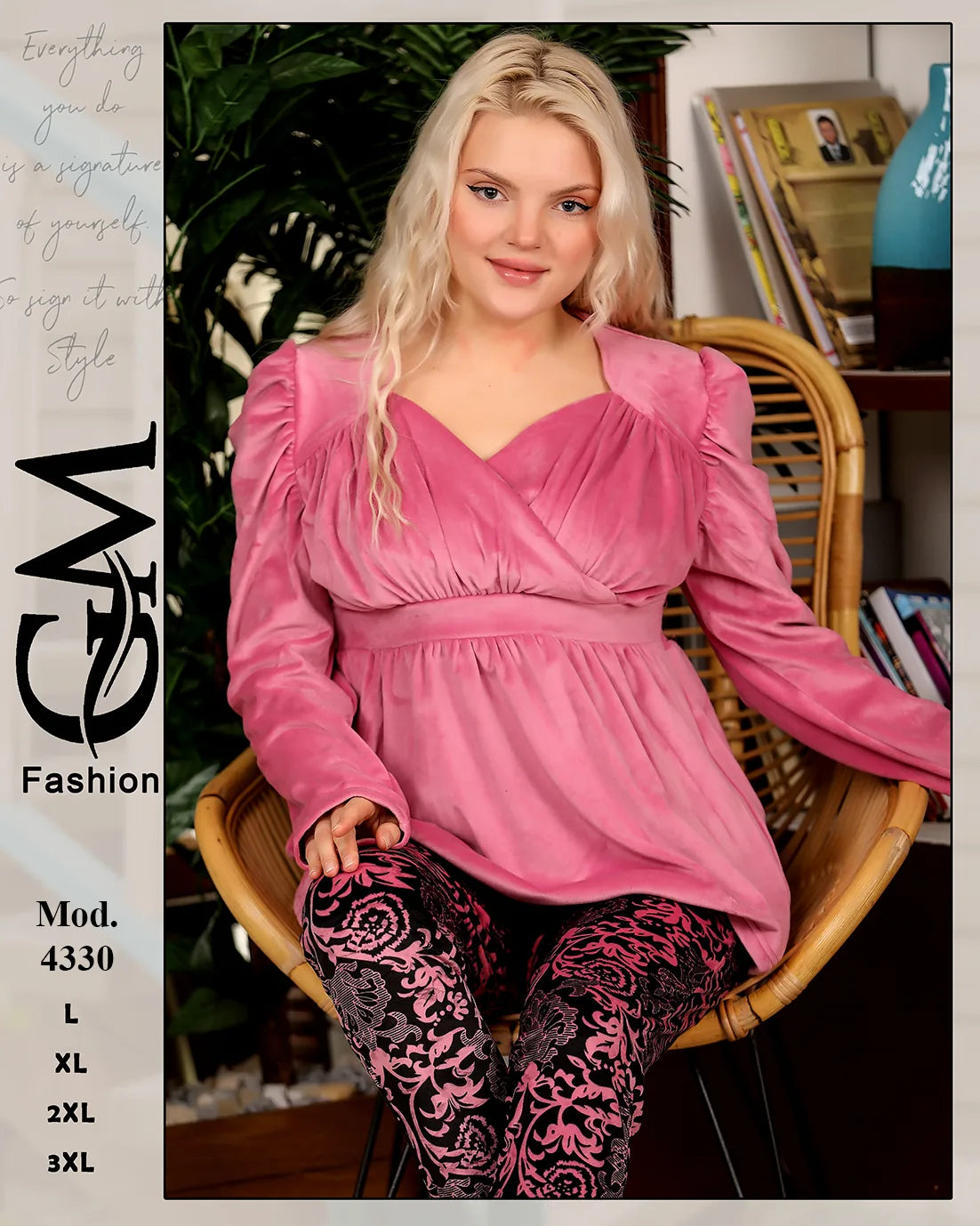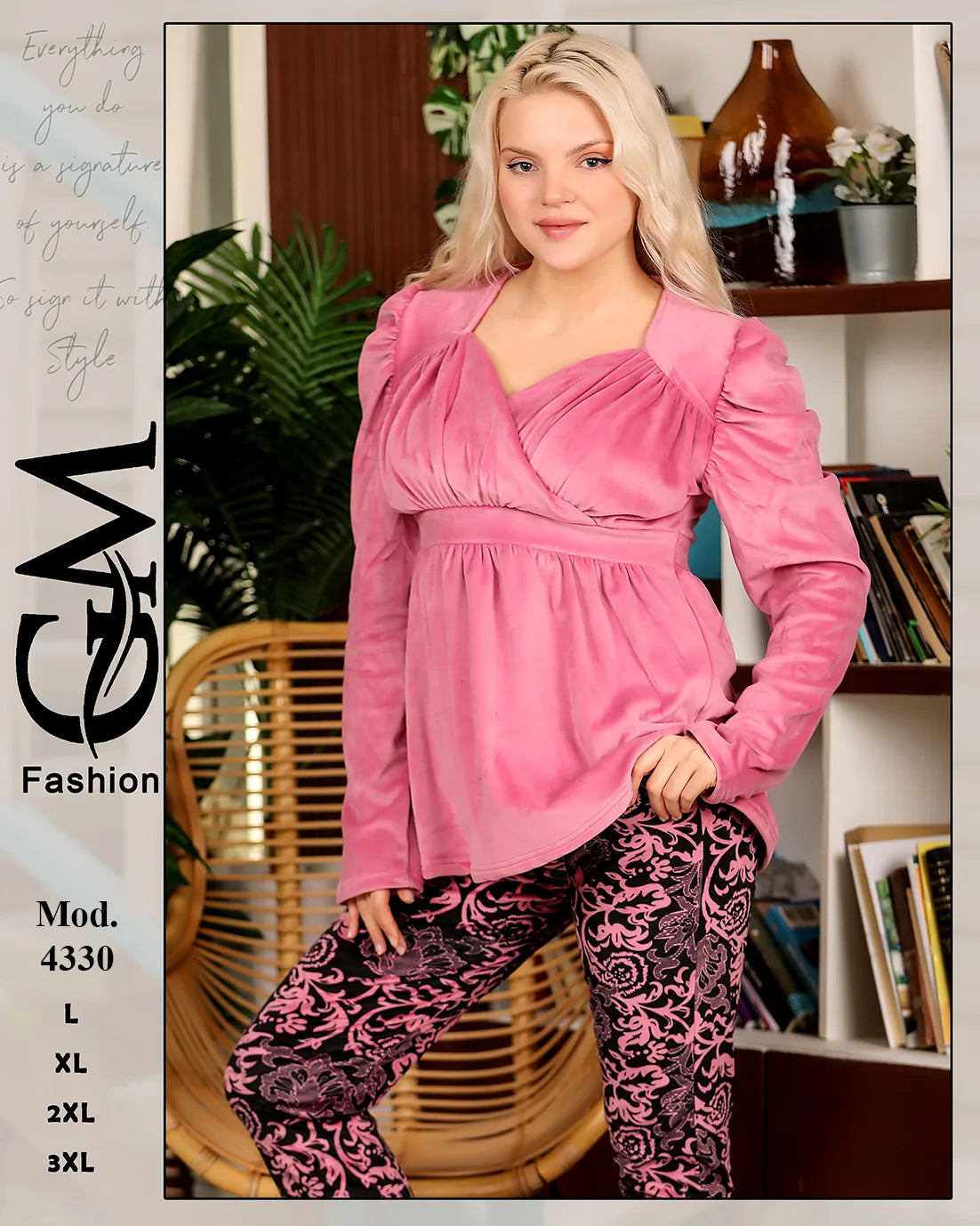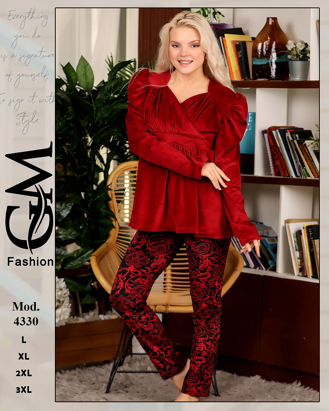 طقم هوم وير شتوي حريمي قطيفة قطعتين | موديل 4330 | GM Fashion