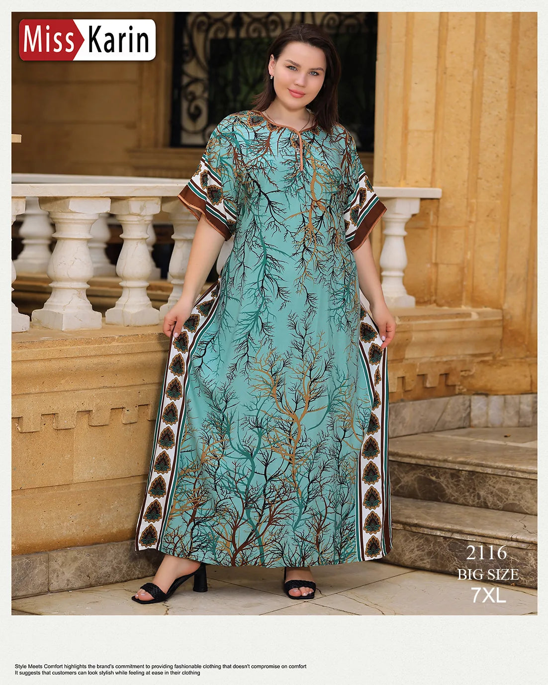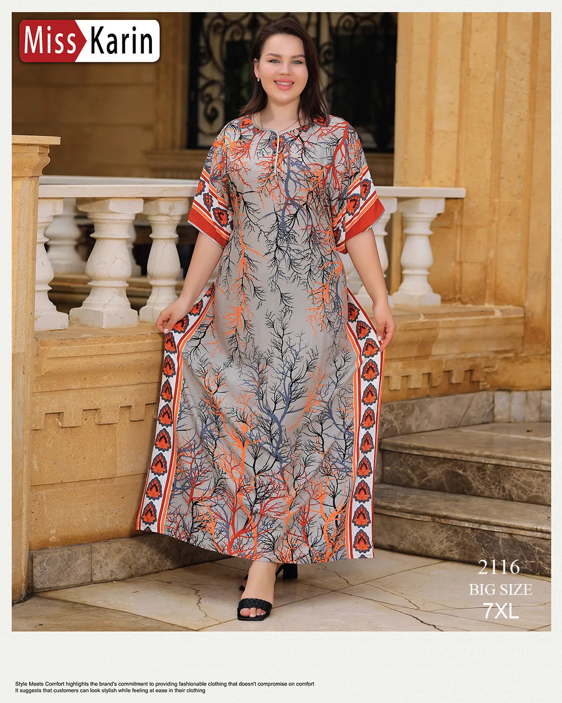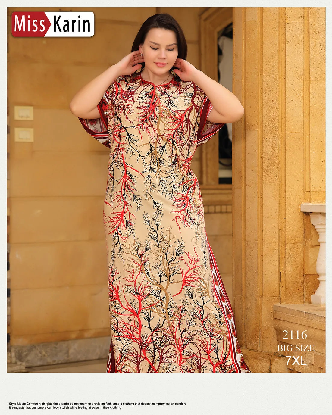 لو بتحبي الشكل الشرقي الأنيق مع بارد، جلابية موديل 2116 من Miss Karin هتكون أنسب اختيار ليكي:تصميم عصري بطابعة عربي مشجر وملفت.أكمام واسعة جدًا لحرية حركة واحة طول اليوم.الخامة حتىة، تقدم للبيت والاستقبال.المقاس واسع النطاق، ومناسب لمقاسات كبيرة آخر 7XL. في البيت مع جلابية 2116 من الآنسة كارين، وعيشي بارد والشياكة في كل وقت.