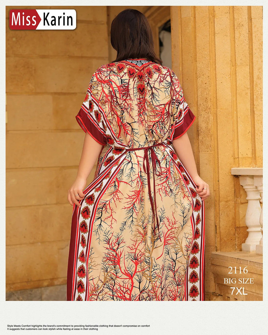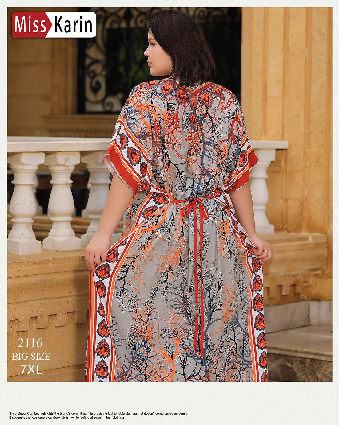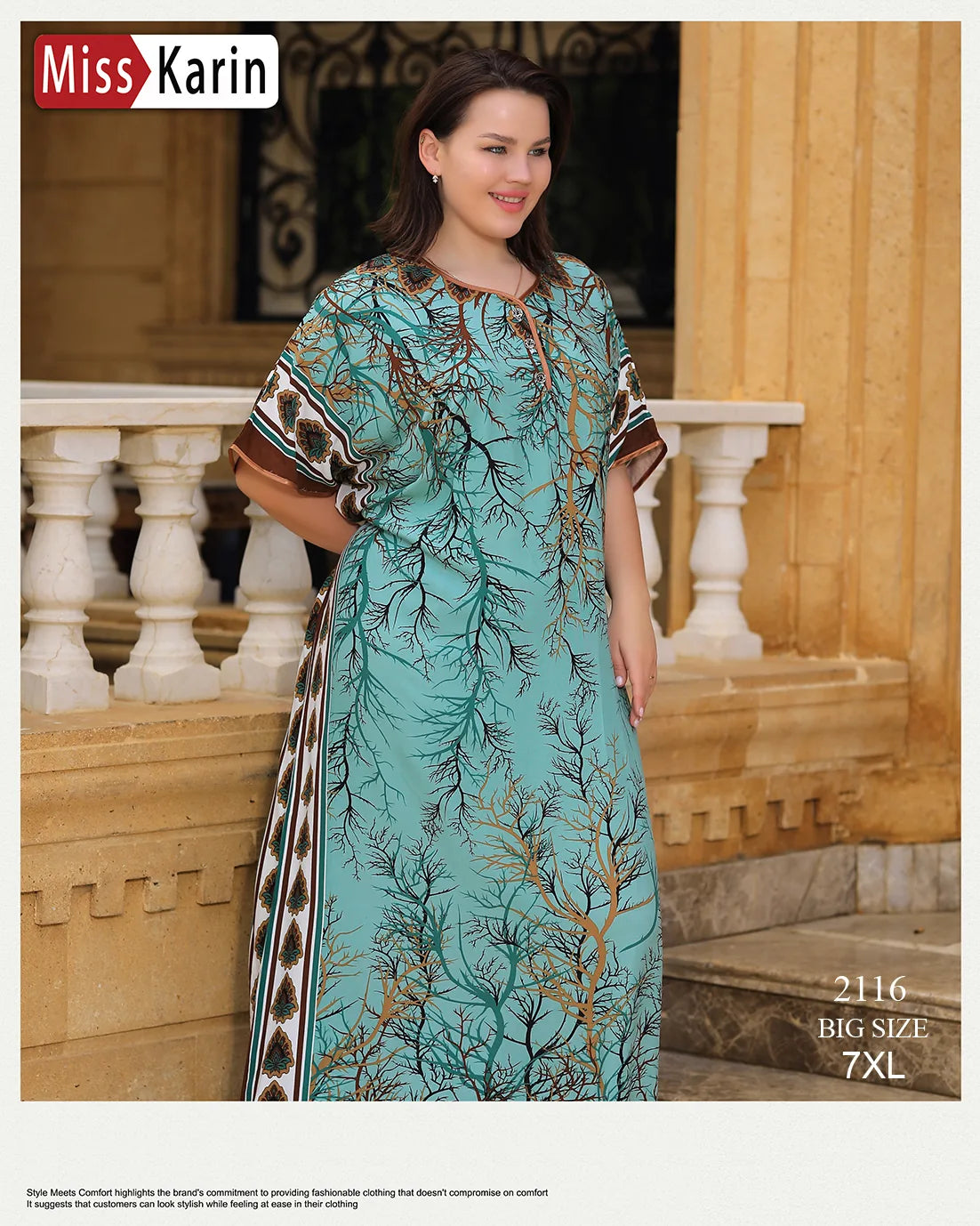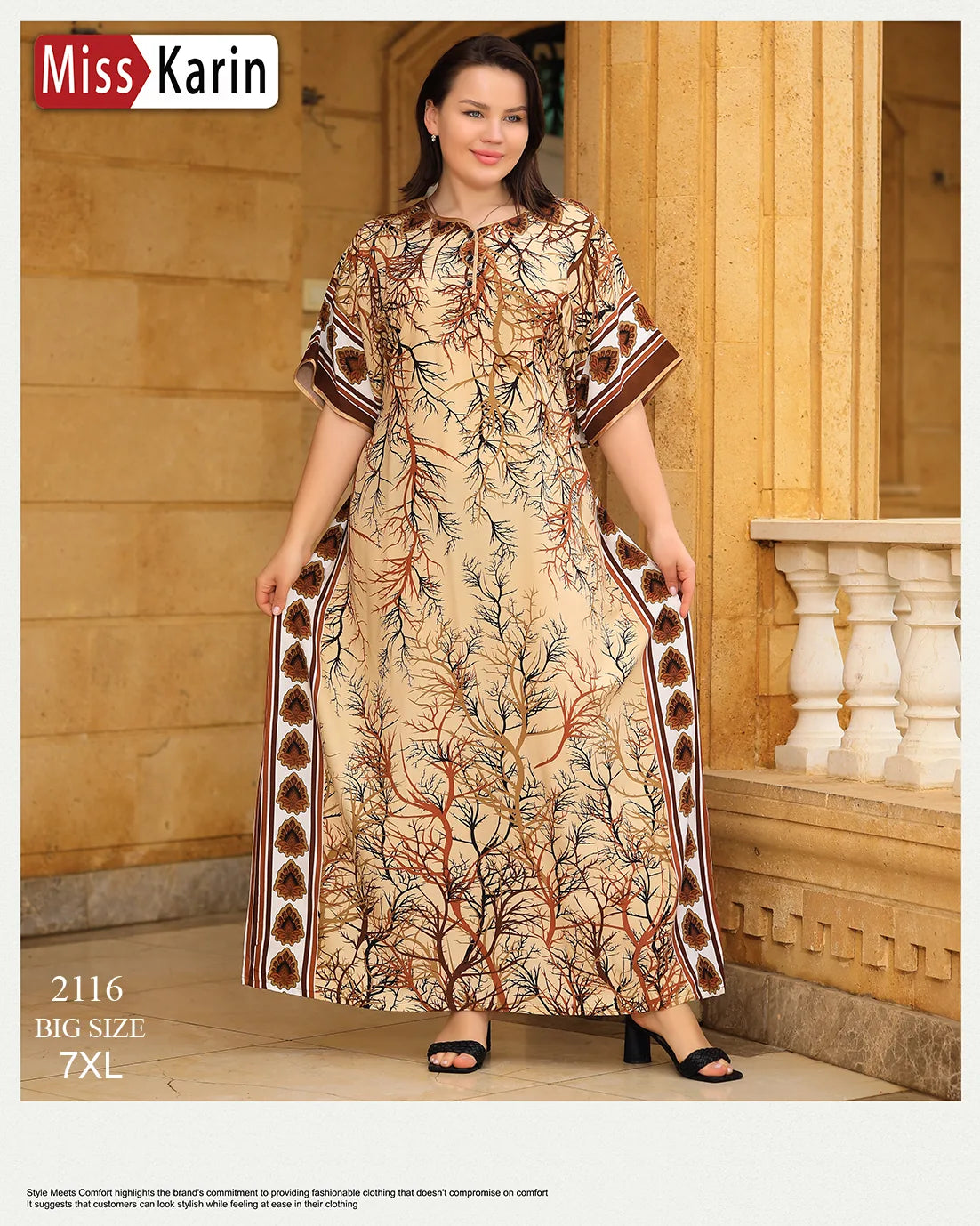 لو بتحبي الشكل الشرقي الأنيق مع بارد، جلابية موديل 2116 من Miss Karin هتكون أنسب اختيار ليكي:تصميم عصري بطابعة عربي مشجر وملفت.أكمام واسعة جدًا لحرية حركة واحة طول اليوم.الخامة حتىة، تقدم للبيت والاستقبال.المقاس واسع النطاق، ومناسب لمقاسات كبيرة آخر 7XL. في البيت مع جلابية 2116 من الآنسة كارين، وعيشي بارد والشياكة في كل وقت.