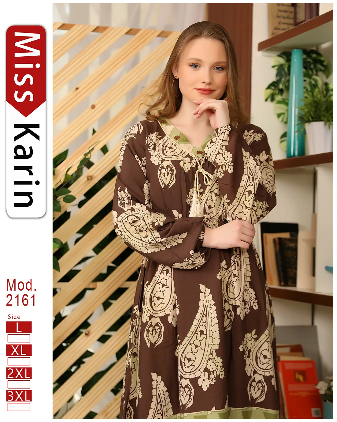 موديل 2161 هي الجلابية اللي هتديكي طابع مصري أصيل وفي نفس الوقت عصري: طبعة فلاحي بلمسة ديزاين حديثة.ألوان متعددة تناسب كل الأذواق.مريحة وخفيفة، عصرية للصيف والاستقبال.🔹 الموديلات: L – XL – 2XL – 3XL🔹 الألوان: بني – زيتي – نبيتي – كحلي – بيج – وردي