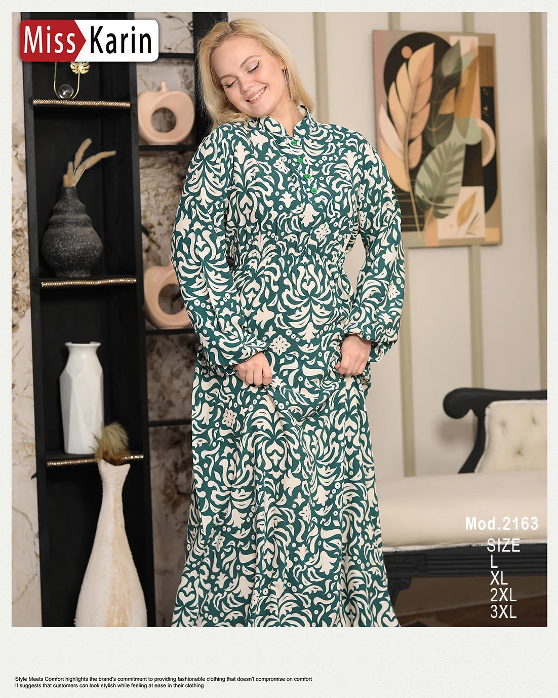 تصميم عصري أنيق لاستقبال من Miss Karin – موديل 2163، أنيق ومريح، بلمسة ناعمة للاستخدام اليومي.قصة مريحة وداعمة من أشعة الشمسأكمام طويلة ونقشةخامة سريعة ومناسبة للجوهرة الساخنة متوفرة بمقاسات: L – XL – 2XLمتاحة بـ عدة ألوان مختلفةمثالية للبيت أو زيارة. تم اختيار اللون والمقاس المناسب لها الآن.