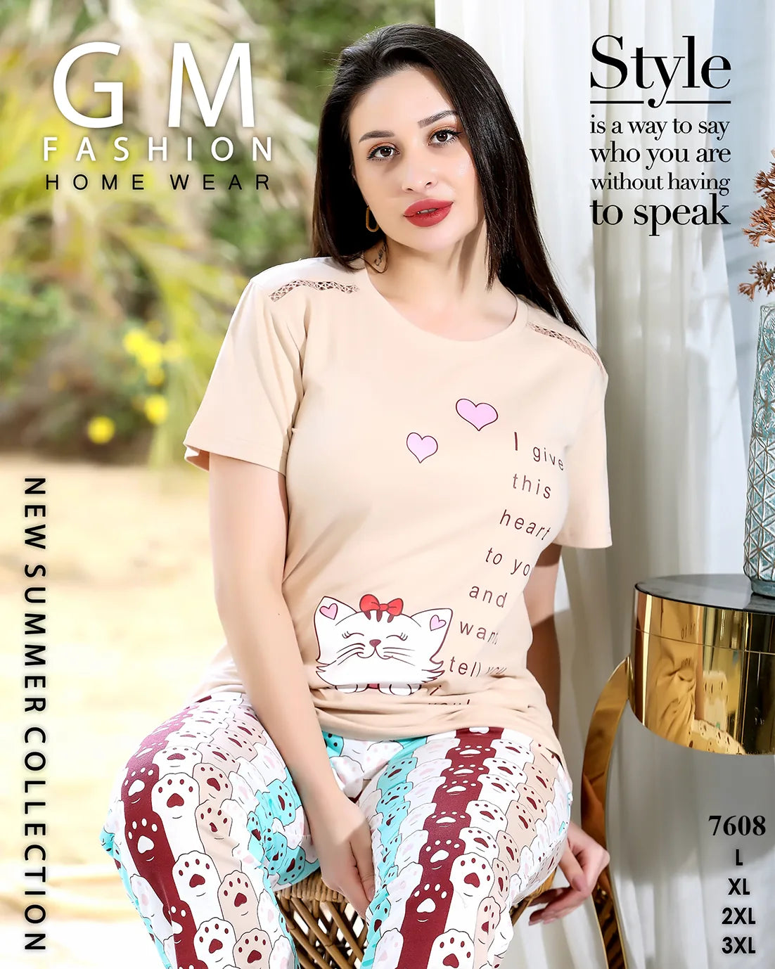 استمتعي بالراحة والأناقة في البيت مع بيجامة GM Fashion الجديدة – موديل 7608 من الكوليكشن الصيفي الجديد.