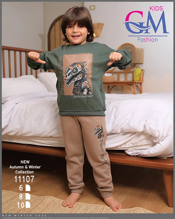 ترنج أولادي قطيفة شتوي ديناصور – موديل 11107 – مقاسات 6-8-10 سنوات