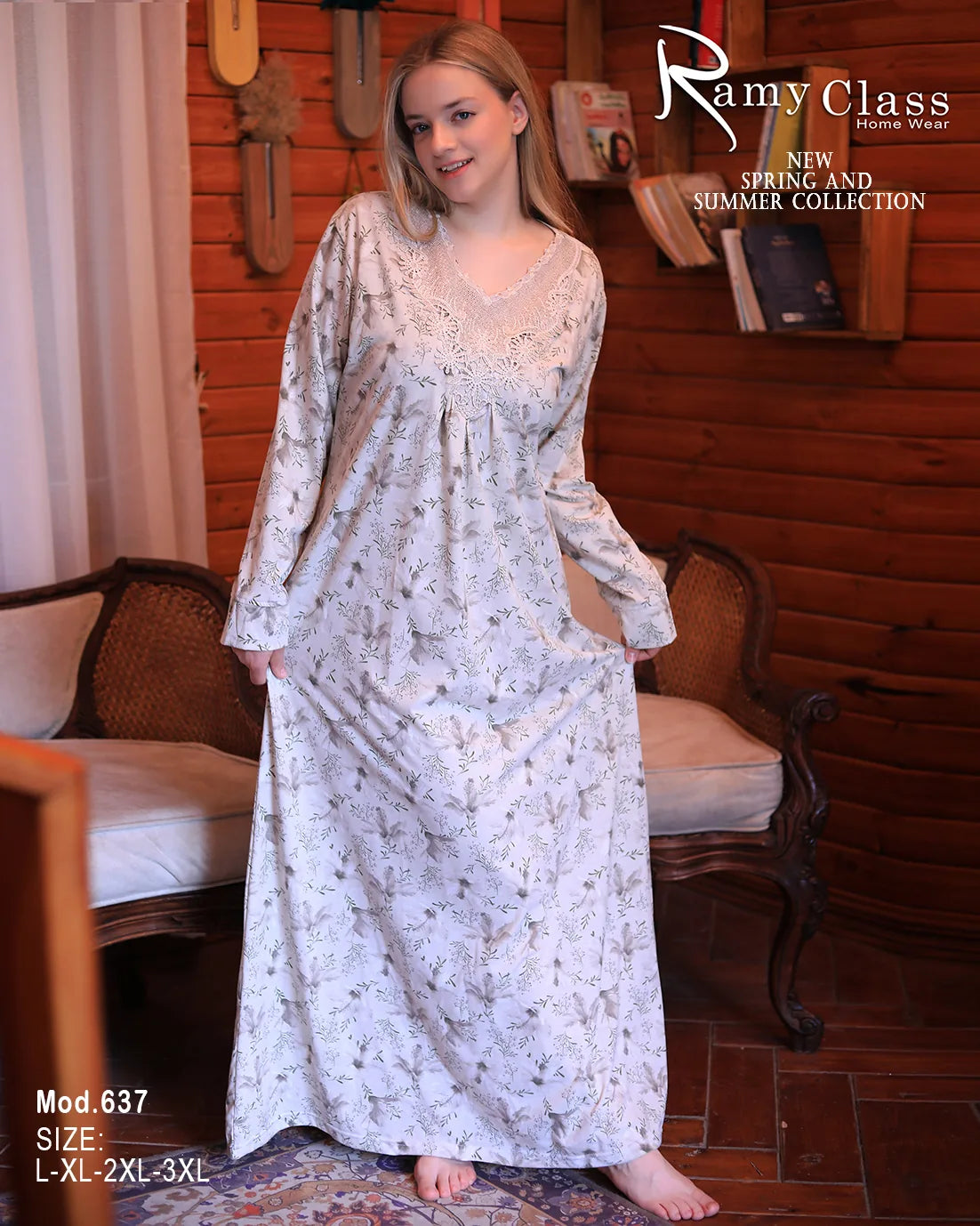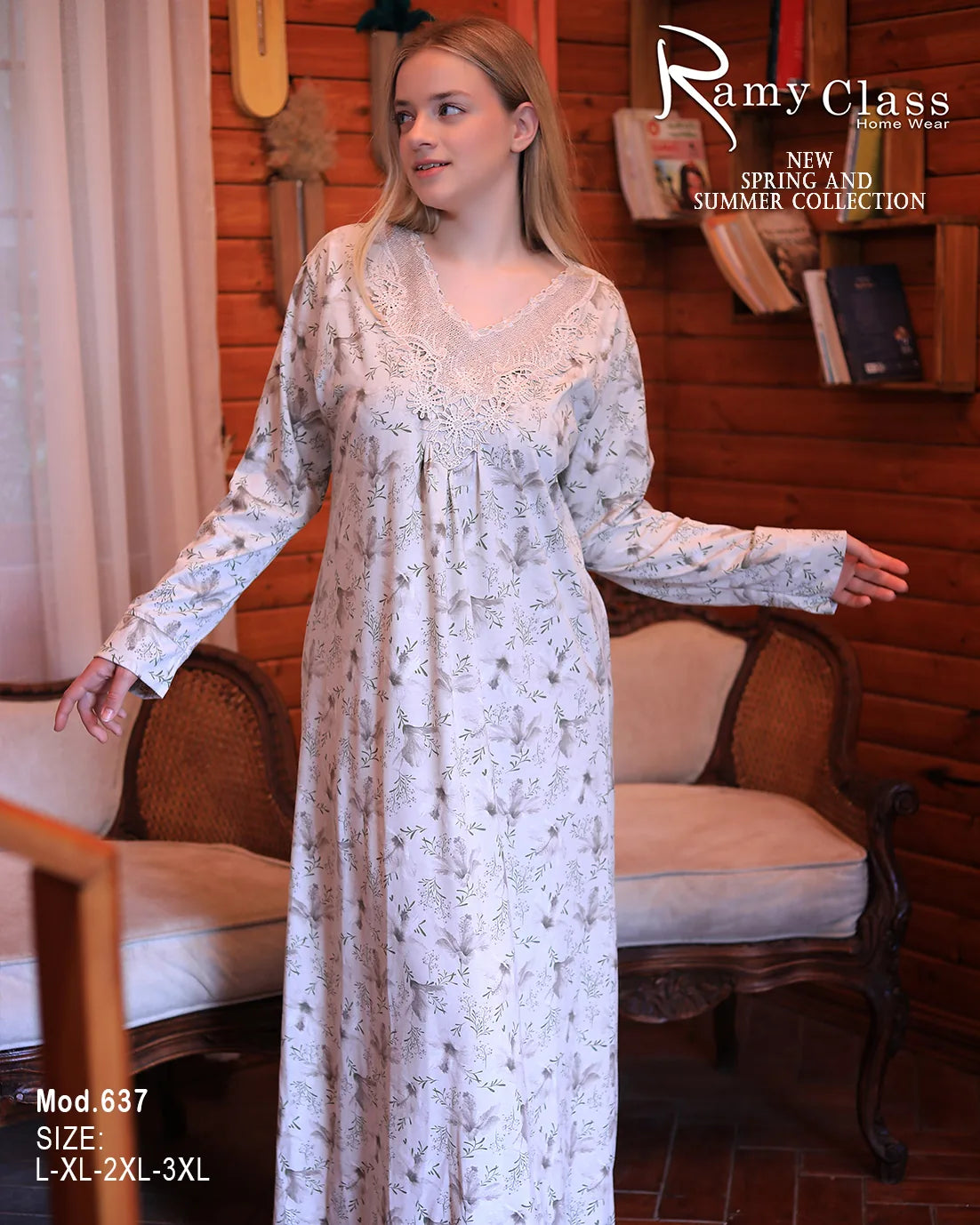 عباية قطن رائجة - موديل 637 للصيف من رامي كلاس تصميم فاخر وخفيف لمواجهة الصيف مع شكل أنثوي مميز.- خامة قطن منتعشة وخفيفة - تصميم بنقشة زهور -خفيف: لبني - نبيتي - جميلي - أزرق - المقاسات: L، XL، 2XL، 3XL مثالية للبيت أو تفضل، تفضل راحة وأناقة في نفس الوقت.