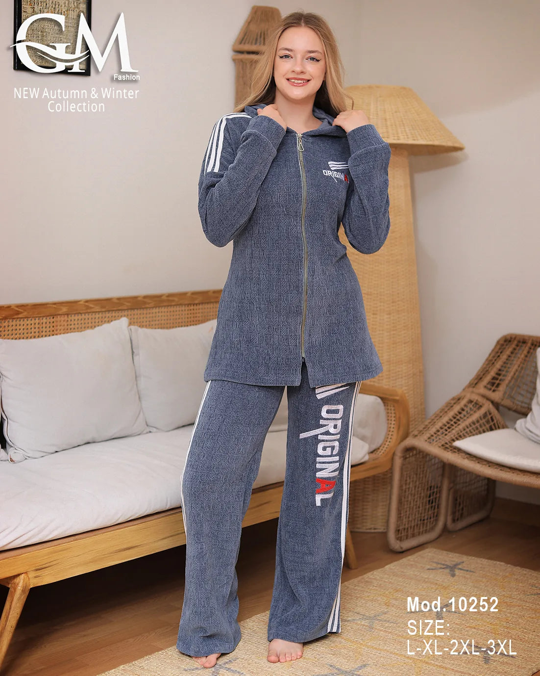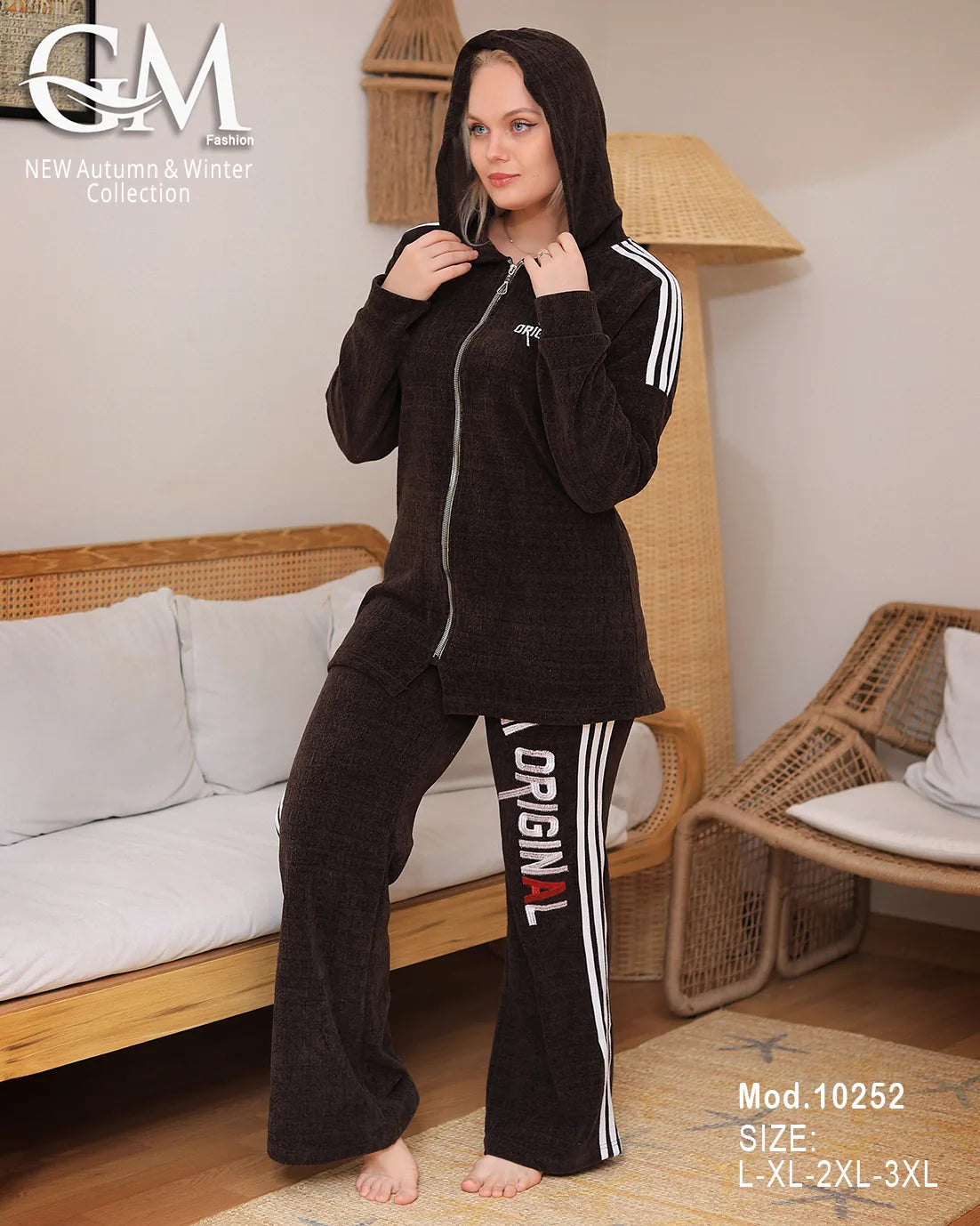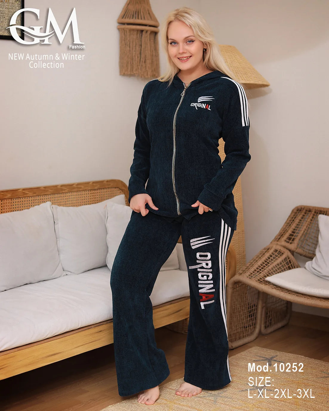 طقم شتوي مميز من GM Fashion، خامة قطيفة ناعمة عالية الجودة مع كابيشو أنيق وسوستة أمامية لسهولة الارتداء. البنطلون مزود بخطوط جانبية مطبوعة بتصميم ORIGINAL لمظهر عصري ومريح. متوفر بمقاسات واسعة تناسب L-XL-2XL-3XL وألوان متعددة تناسب ذوقك. مناسب للبيت أو الخروج الكاجوال في الشتاء.
