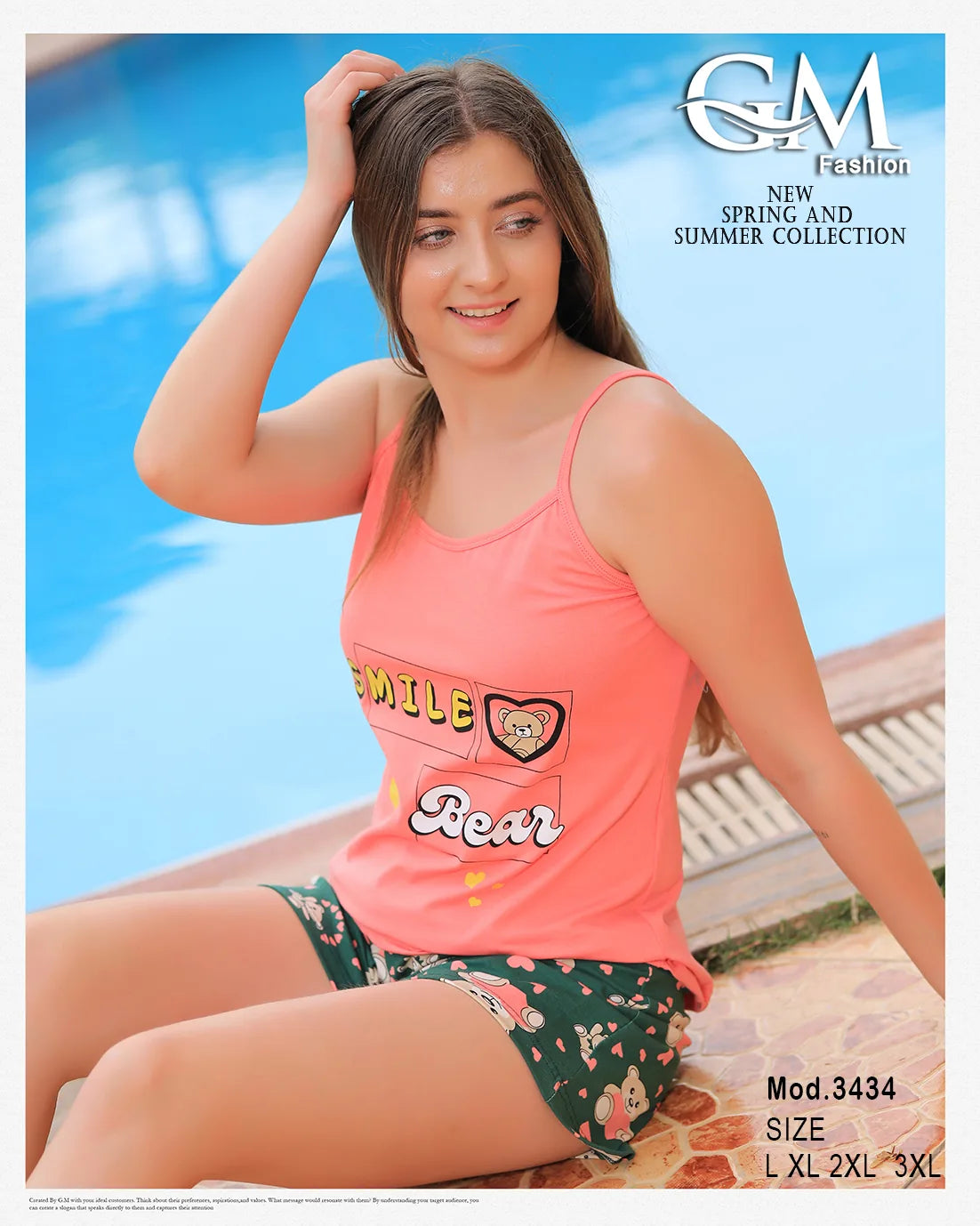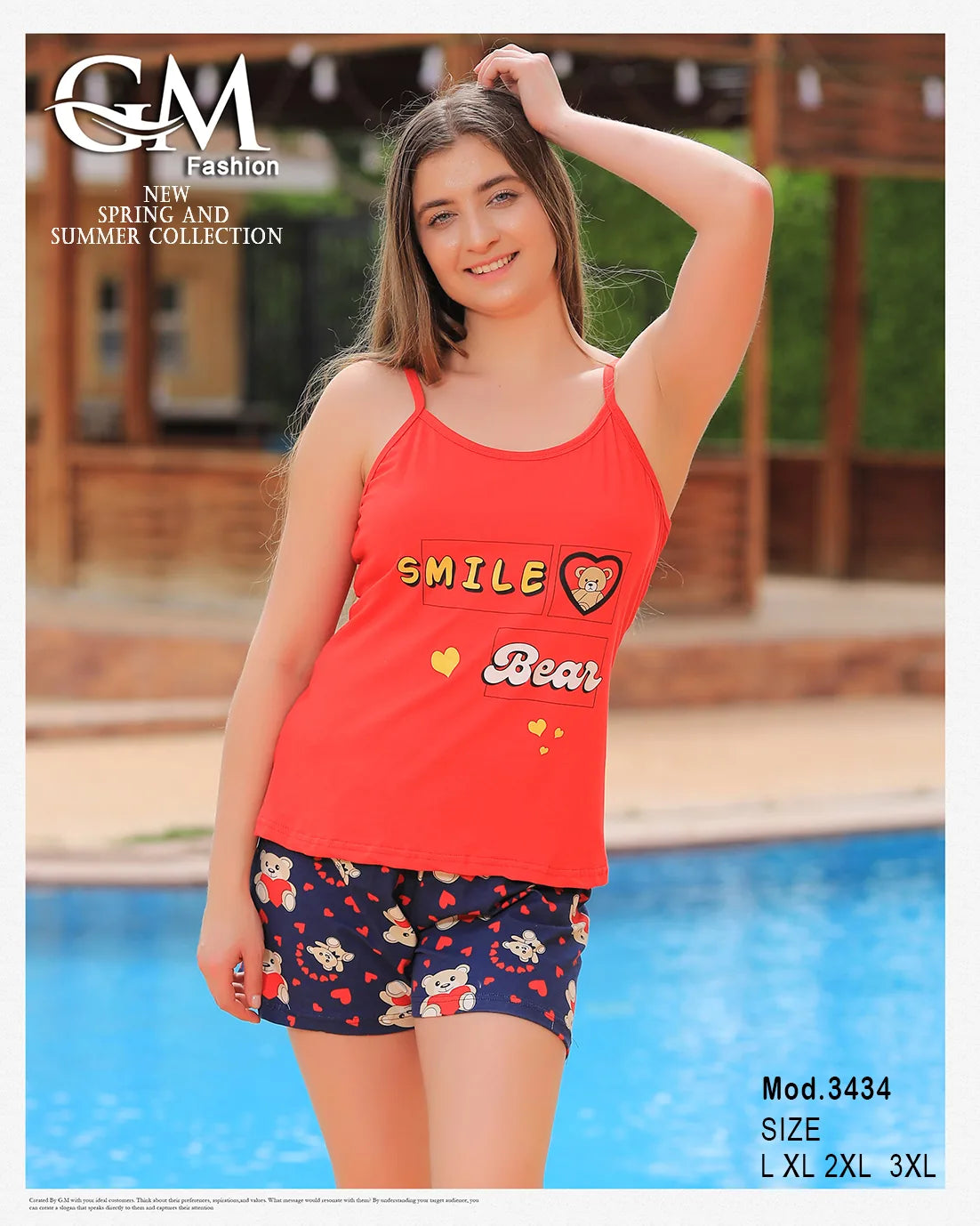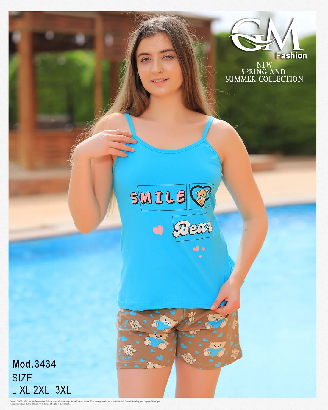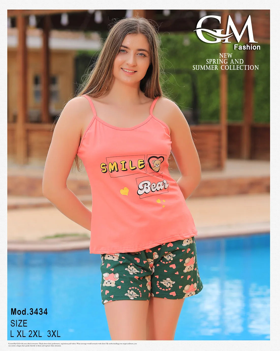 طقم بيتي صيفي حريمي – توب بحمالات موديلات + شورت – 3434 من GM Fashion